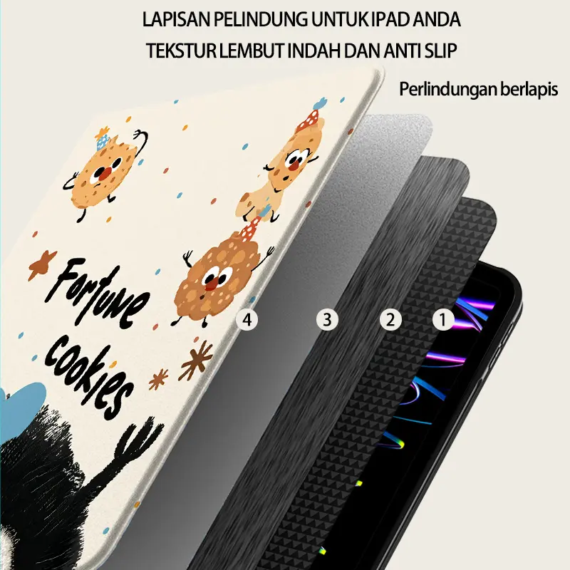 ( Ada slot pen )-Bagian depan dan belakang terbuat dari kulit dan dapat dicetak dengan pola di kedua sisinya. Cangkang bagian dalam berupa cangkang lunak silikon hitam yang dapat ditopang seperti buku Termasuk tempat pena