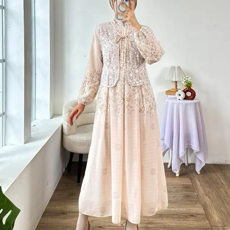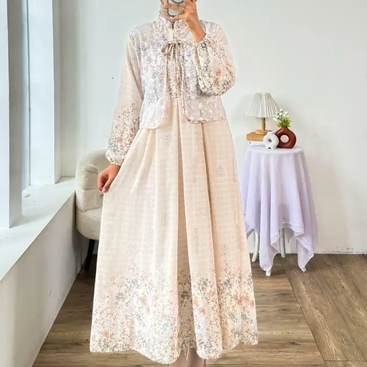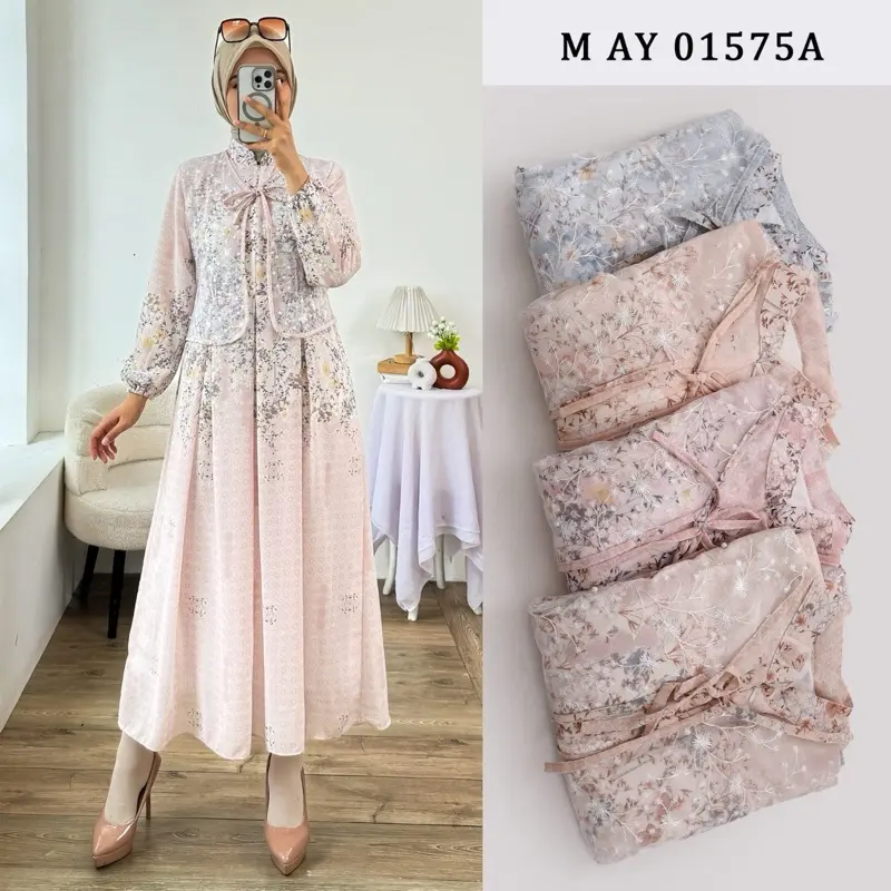 Baru kali ini beli gamis tanpa di potong. Untuk bb 50 tb 150 pas tanpa perlu di rombak. Warna nya pastel jadi ngga norak,baguss