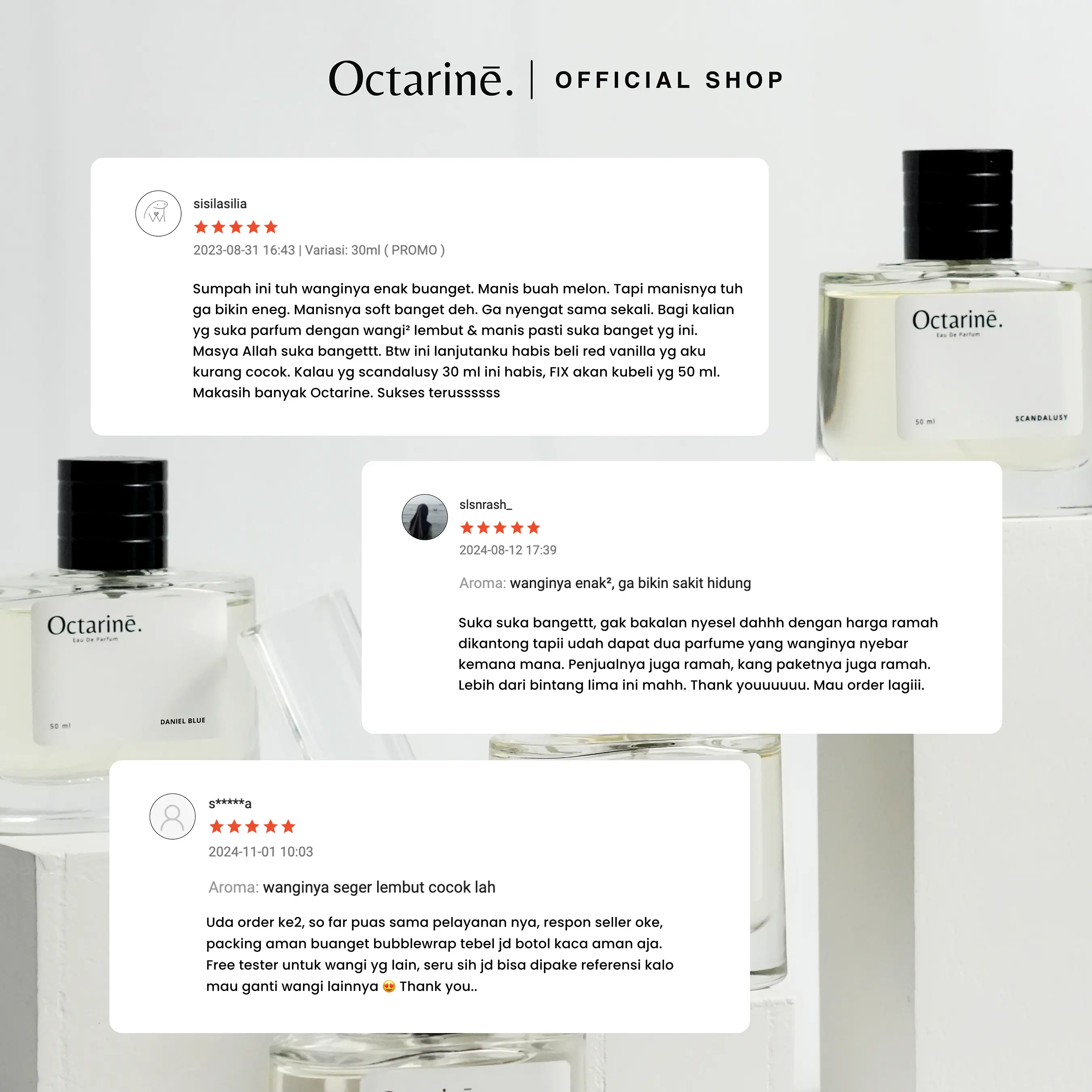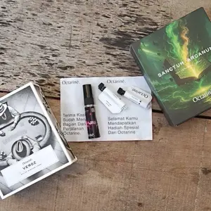 Octarine emang ga pernah gagalll aku udah pernah beli yang boujee fluff. Gilaa itu aja aku sukaa bngtt🤩 Terus juga udah pernah nyobain yang queen of morocco pokoknya ga pernah gagal selalu awett wanginya🤩🤩 ini juga dapet gratisnya black opm ternyata enakannnn jugaaa