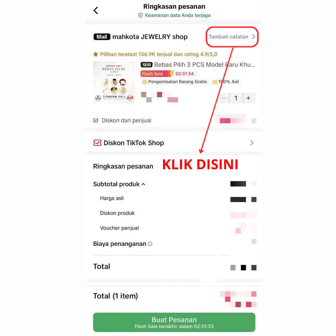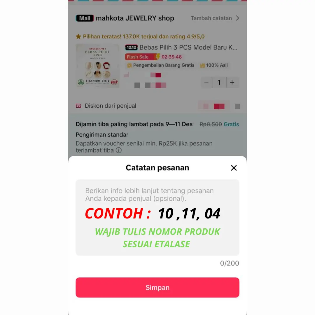 NO keterangan pada "pesan " misalnya ; 10,35,88,sesuai dengan no etalase di dalam live
