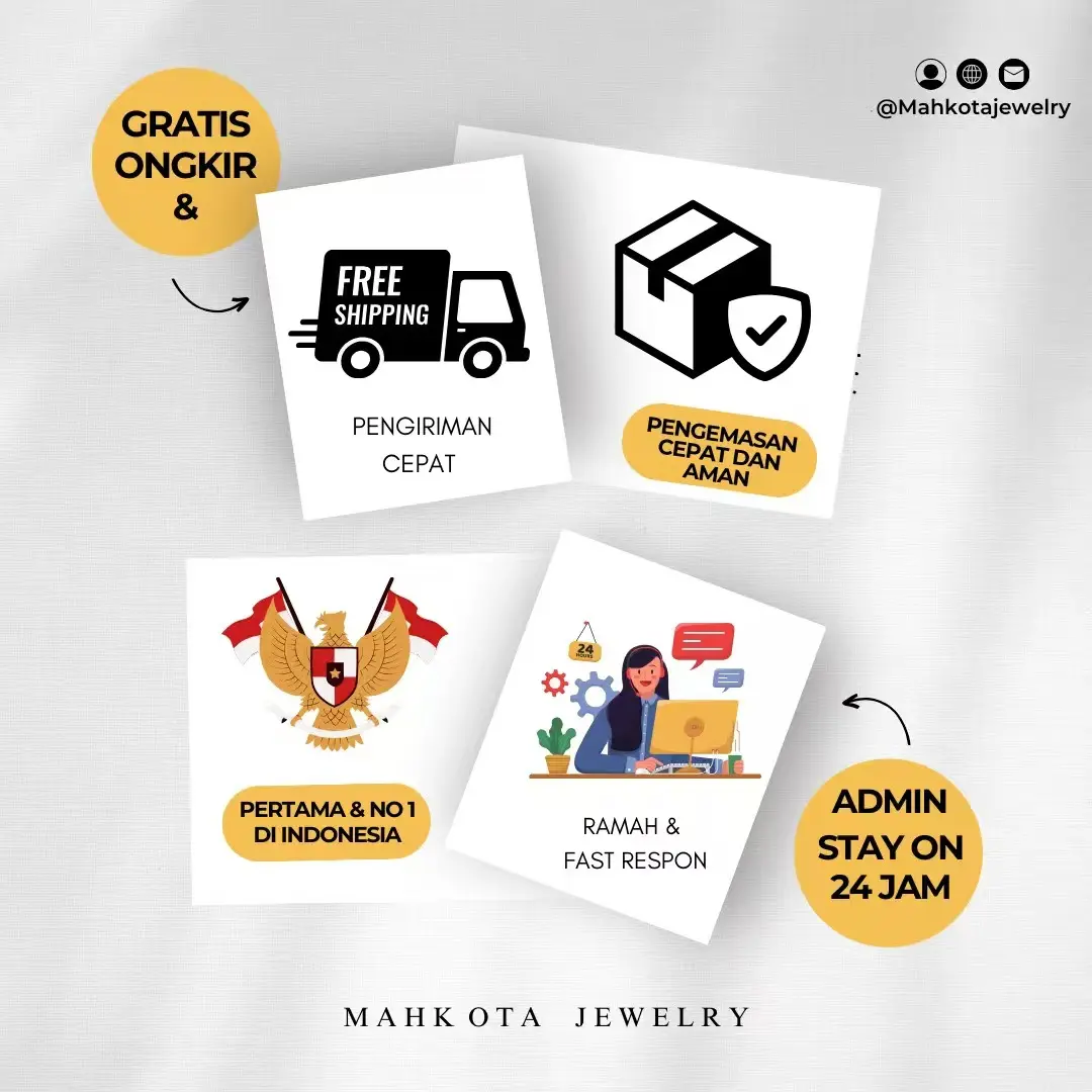Berkualitas tinggi dengan tetap mengedepankan fashion, trendy, simple, classic dan elegant. Gaya eksotis mahkota JEWELRY selalu menghadirkan koleksi perhiasan cantik kesayangan terbaru wanita .