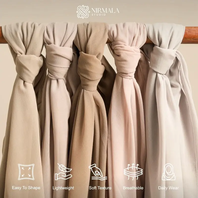 Nirmala Kana Series dirancang sebagai hijab esensial untuk keseharian—ringan, rapi, dan mudah dikenakan tanpa banyak penyesuaian.