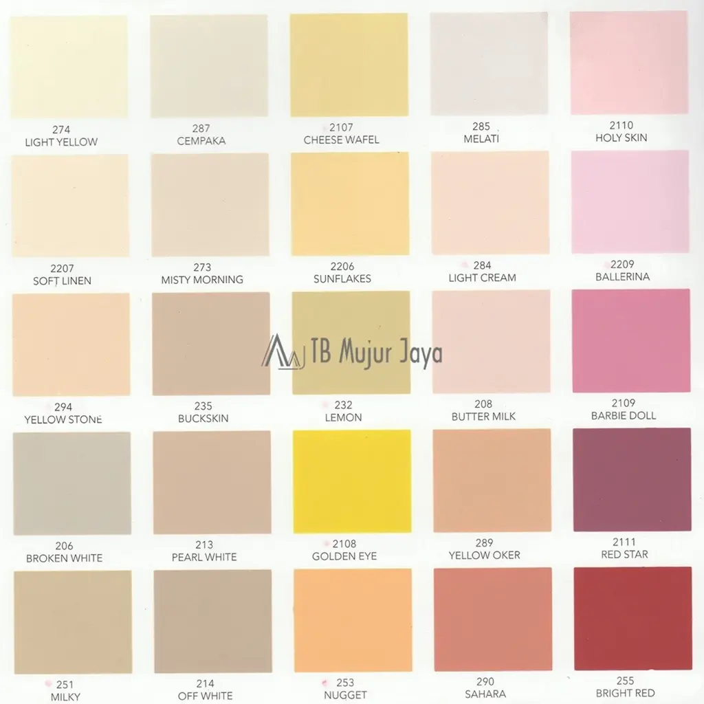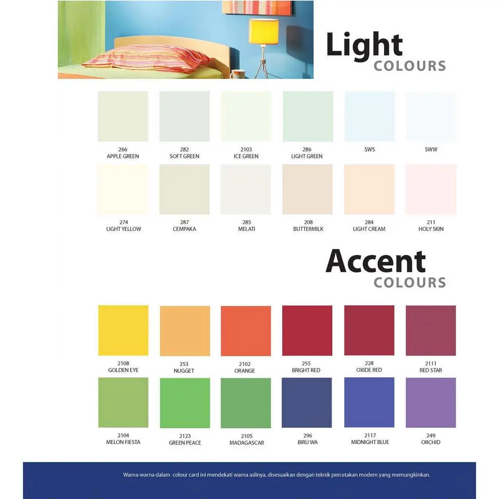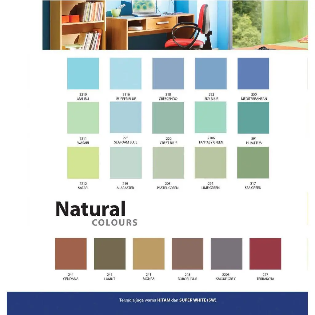 Kebutuhan cat : Untuk 1 kamar biasanya dibutuhkan -+ 2 kg cat, kalau kamarnya kecil ya 1 kg