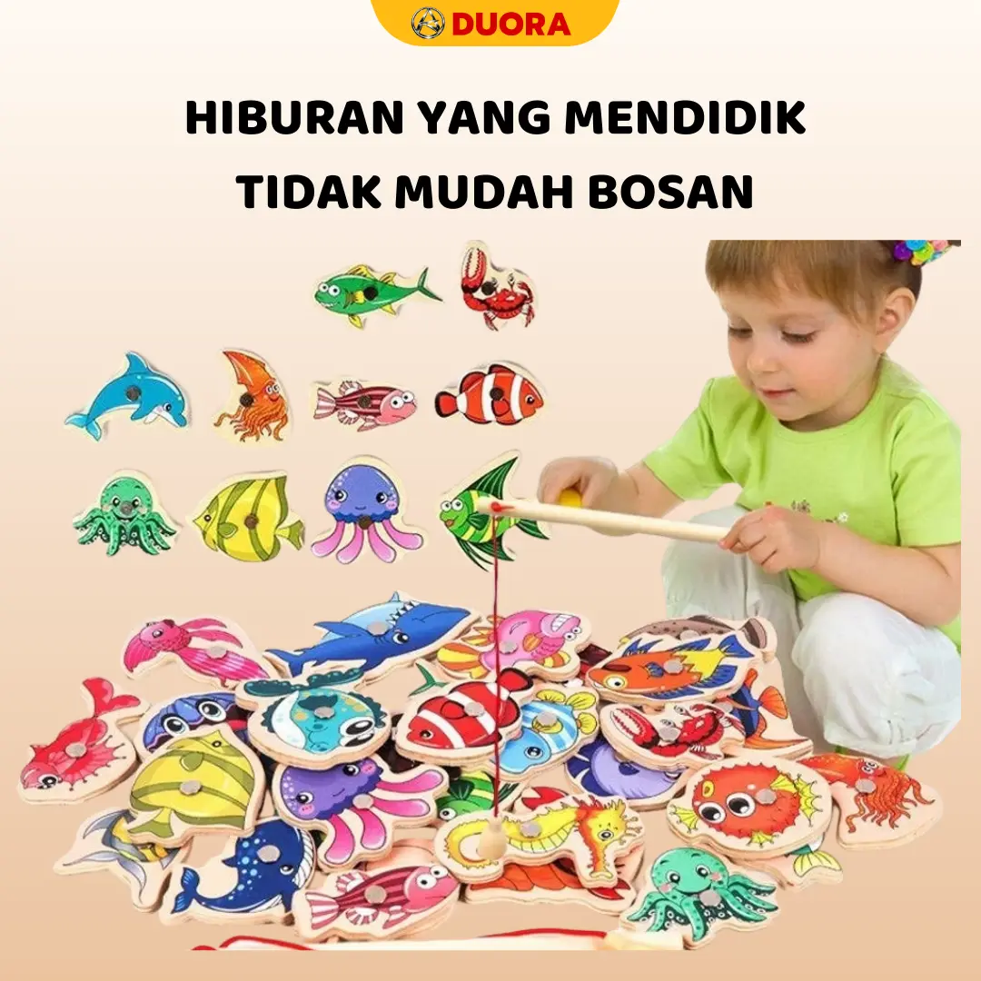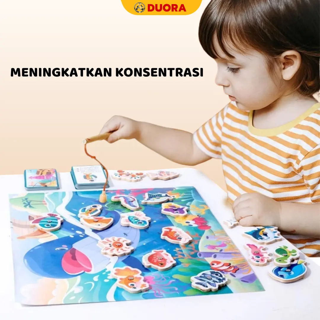 ·Melatih koordinasi tangan & mata. Anak belajar fokus dan menggerakkan tangan dengan tepat saat memancing ikan.