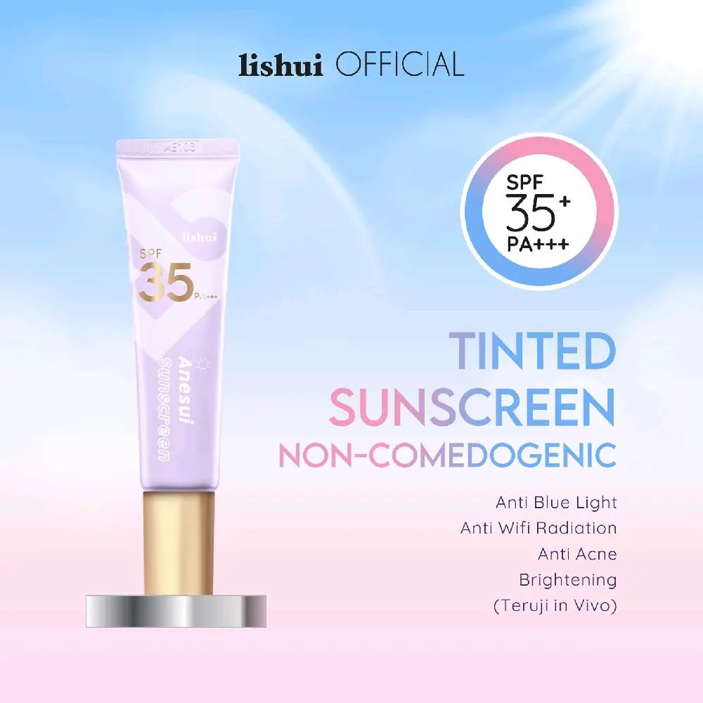5. Lishui Anesui Sunscreen Tinted SPF 40 PA+++ Non Comedogenic Anti Sebum Anti Blue Light Anti Acne Brightening Fragrance Free