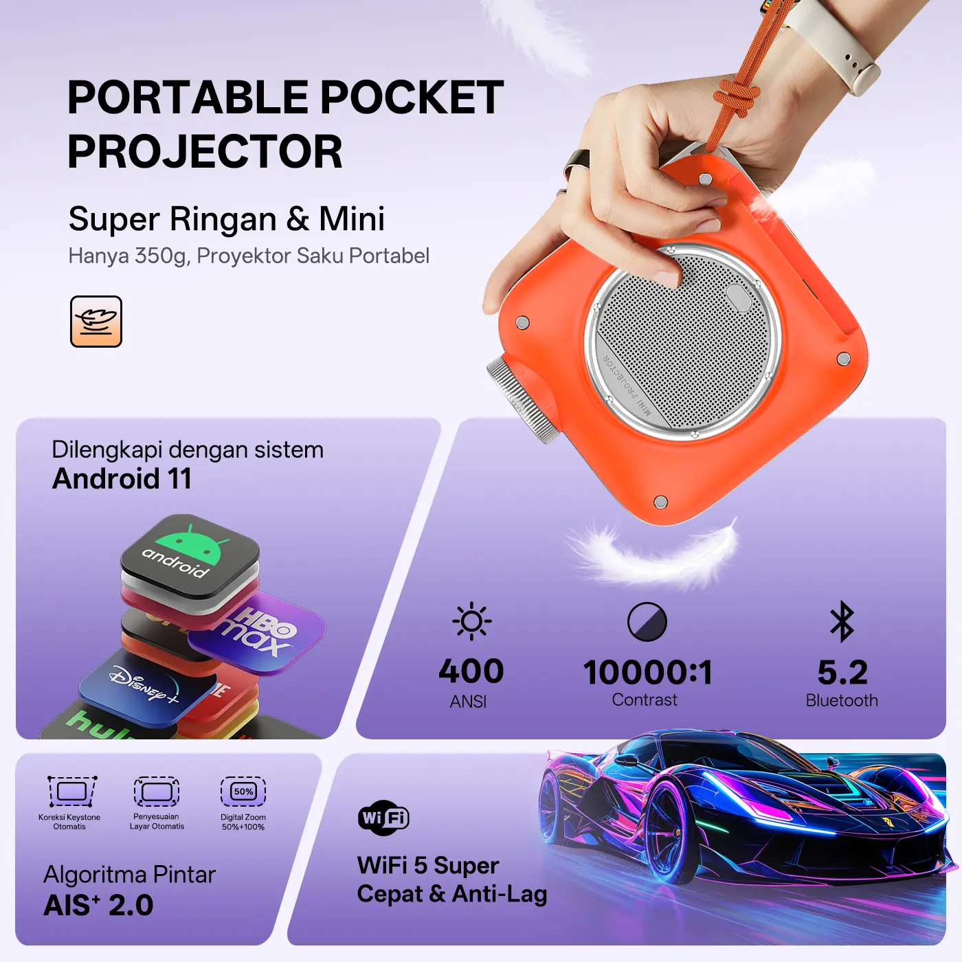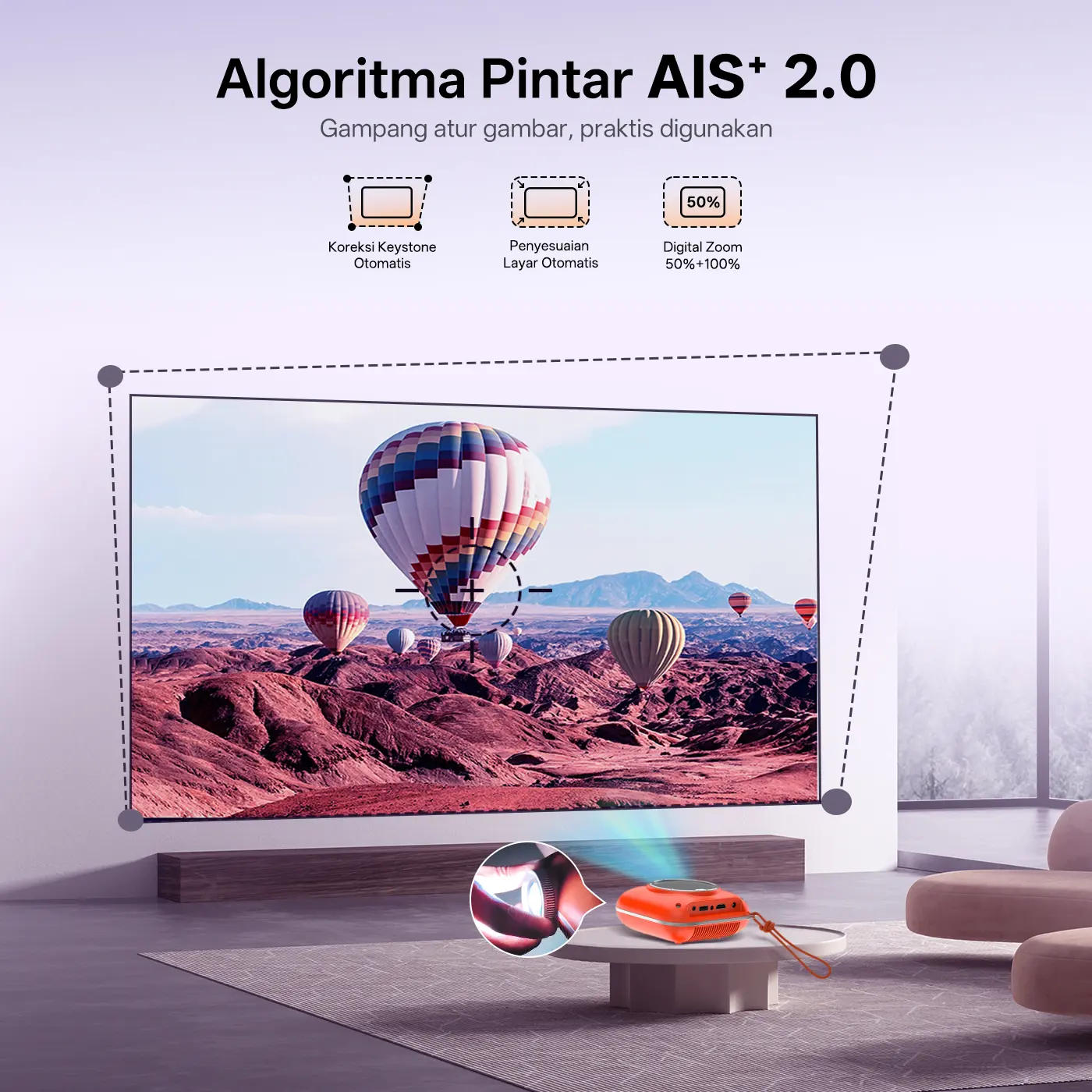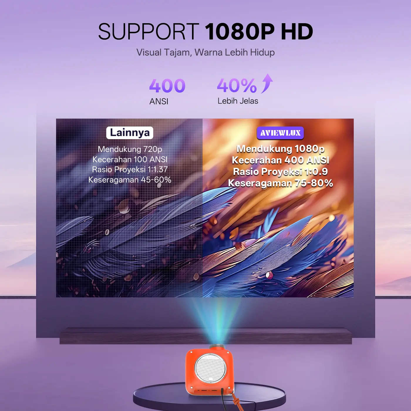 ·400 ANSI Lumens: Tingkat kecerahan yang optimal dan nyaman di mata, memberikan visual yang jelas di ruangan redup.