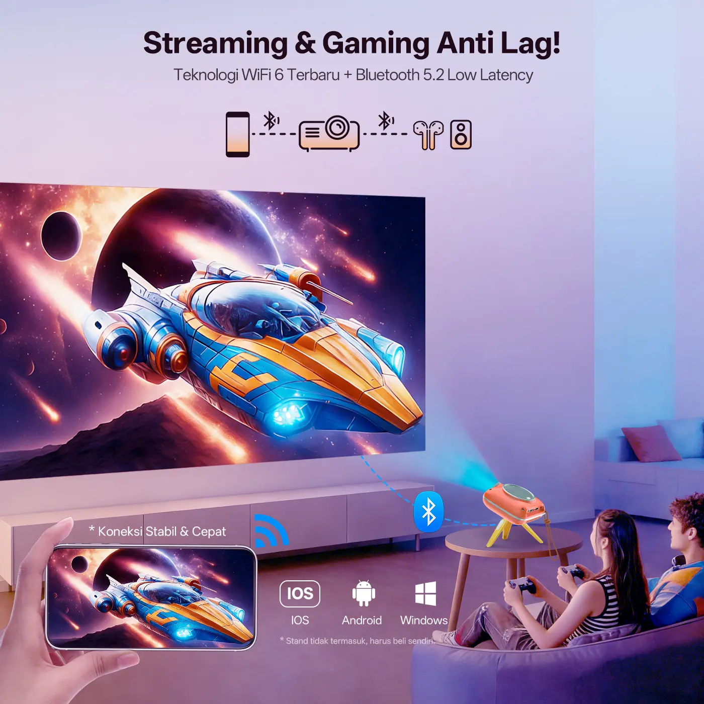 3. Smart Entertainment (Android System) Ubah dinding kamar menjadi Smart TV. Cukup hubungkan ke WiFi, login ke akun streaming Anda, dan nikmati maraton film atau series tanpa perlu kabel yang berantakan.