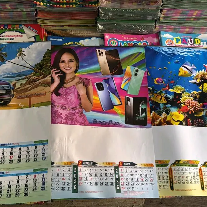 kalender isi 3 lembar gambar ada artis pemandangan