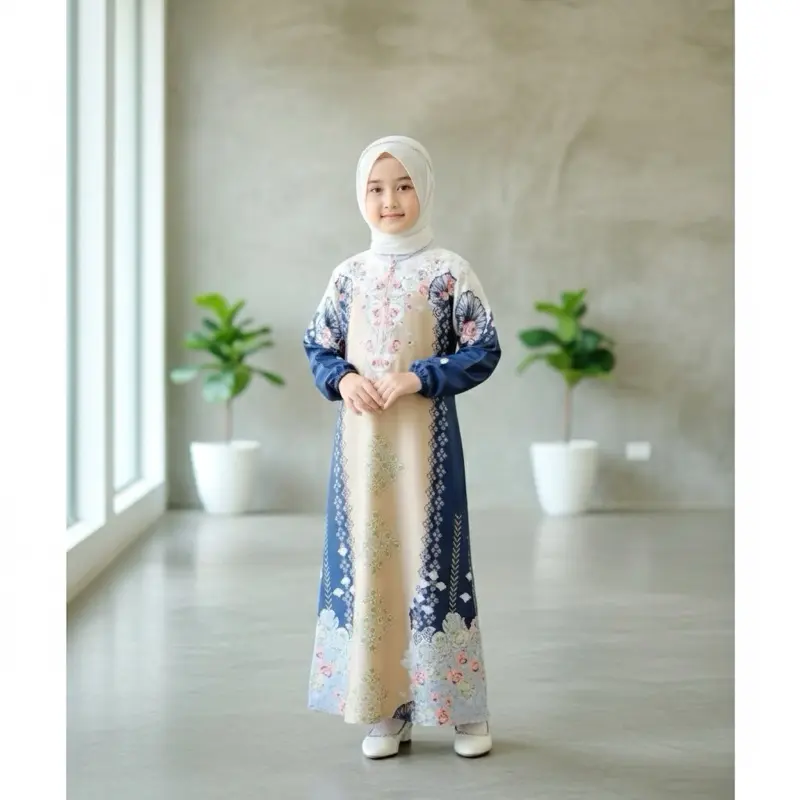 Hadirkan tampilan cantik dan sopan untuk si kecil dengan gamis anak premium motif floral yang dirancang khusus untuk momen spesial seperti Lebaran, acara keluarga, pengajian, wisuda, hingga pesta. Desain eksklusif dengan kombinasi warna lembut dan motif bunga/batik modern membuat anak tampil anggun dan percaya diri.