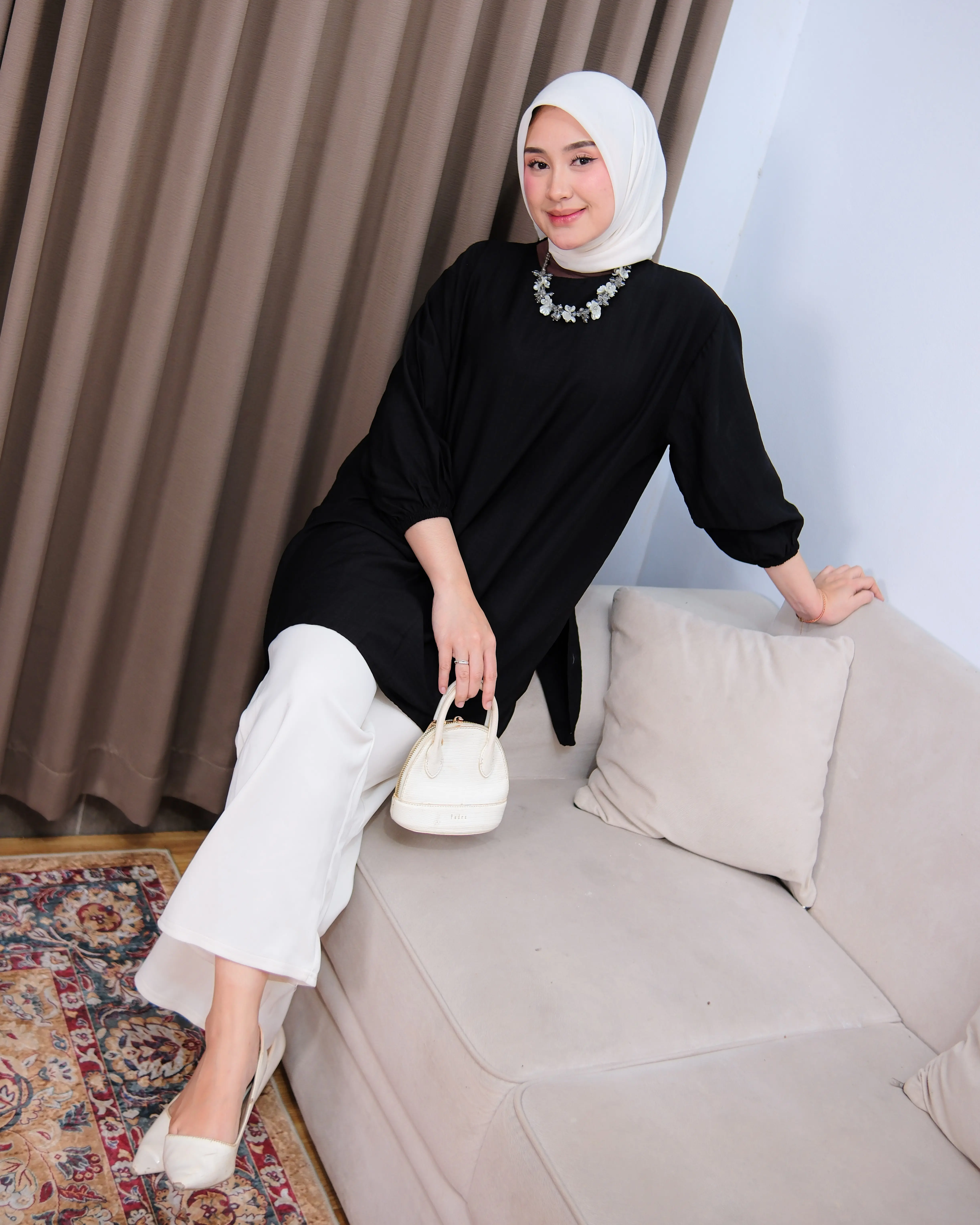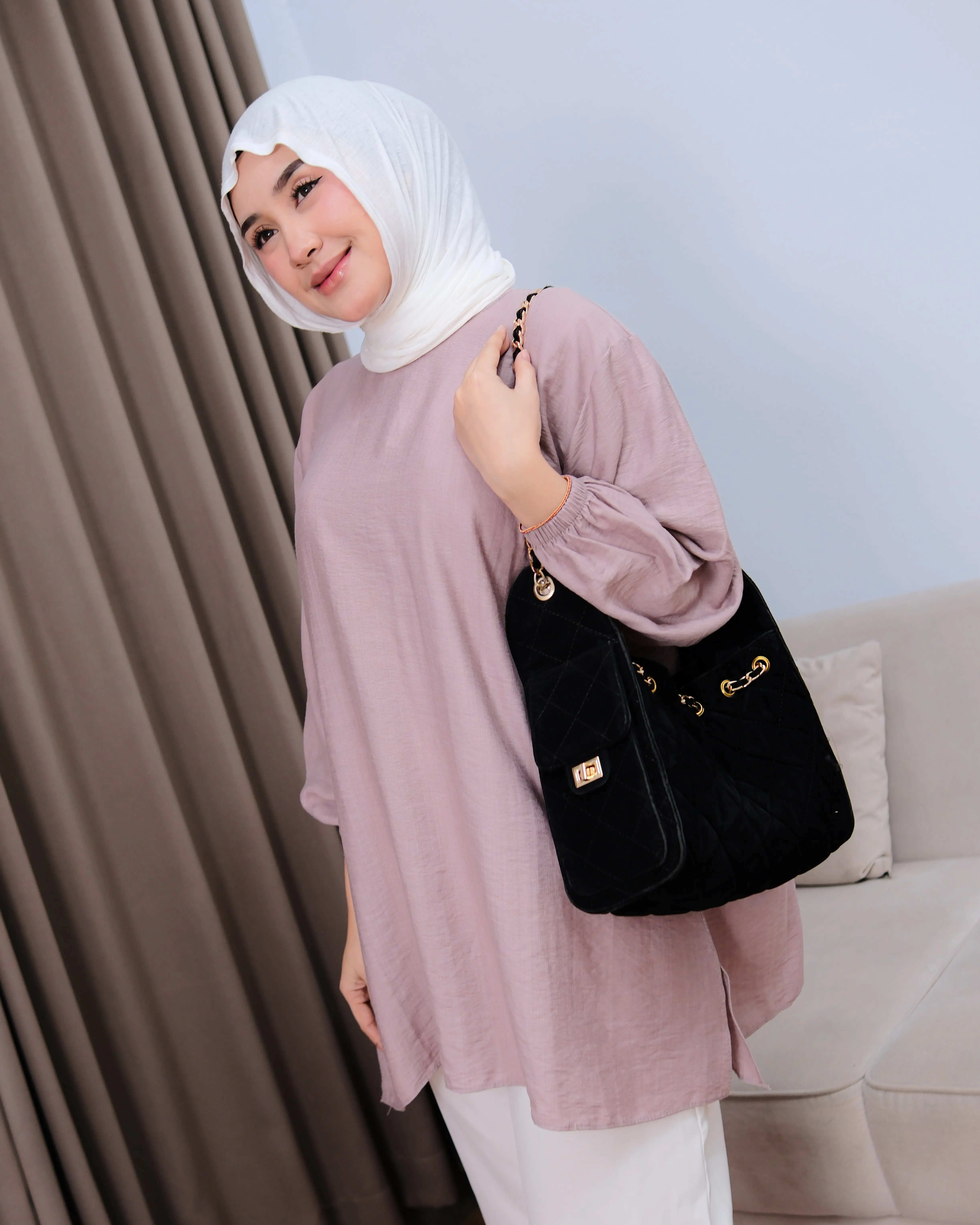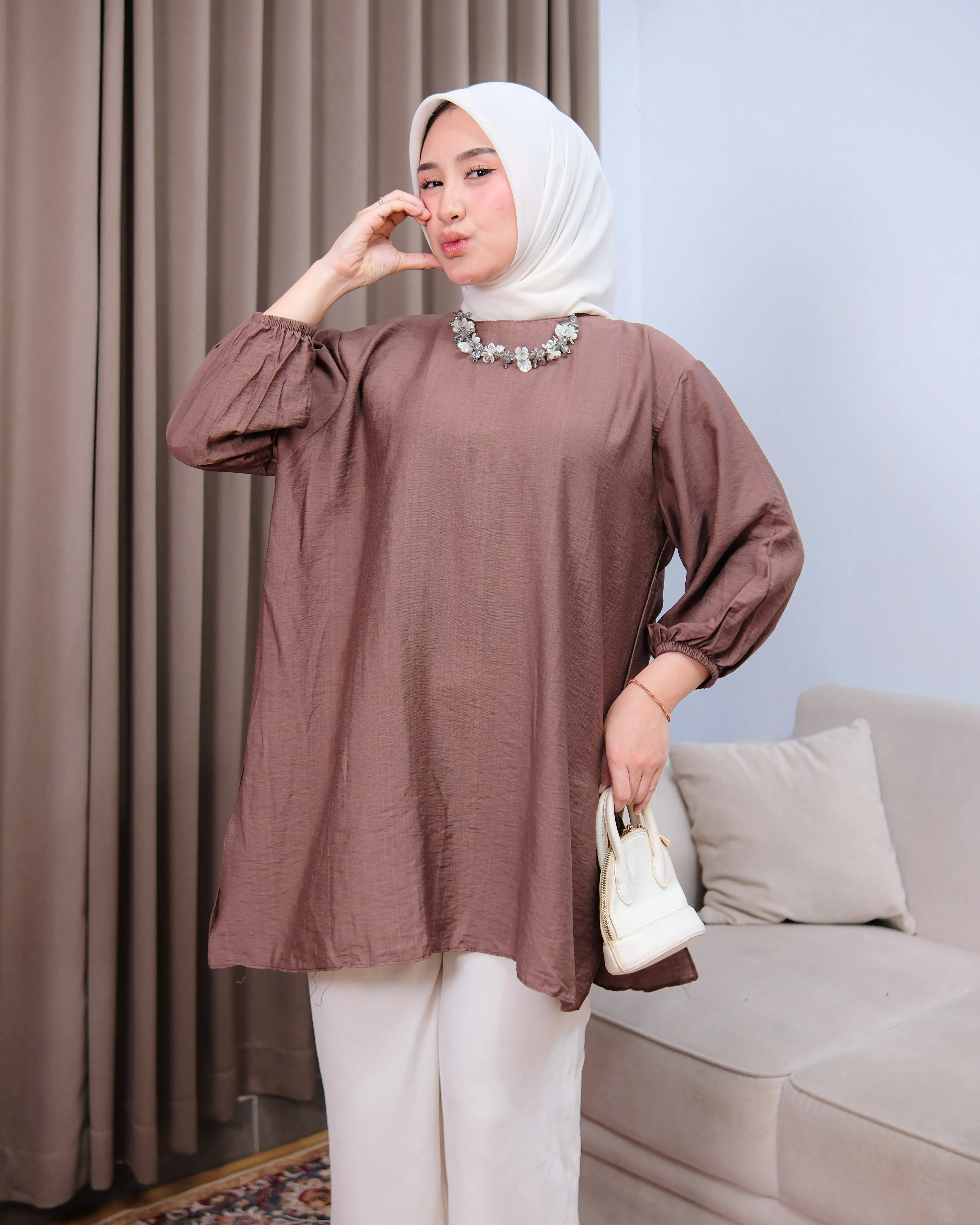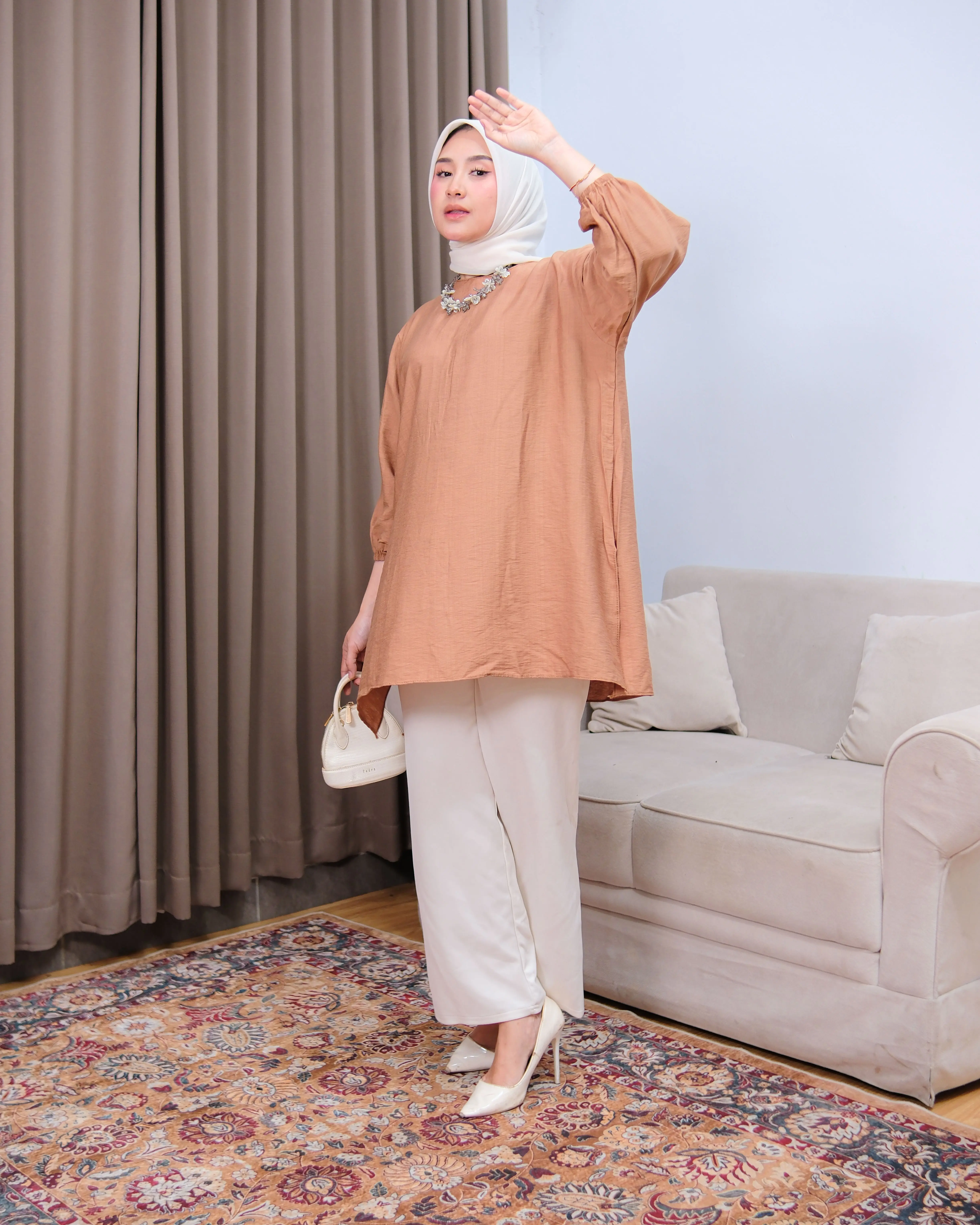 Tampil simpel tapi tetap stylish dengan tunik berbahan poli linen premium yang ringan, adem, dan tidak mudah kusut. Desain loose fit membuat nyaman dipakai seharian, cocok untuk aktivitas harian hingga acara semi-formal.