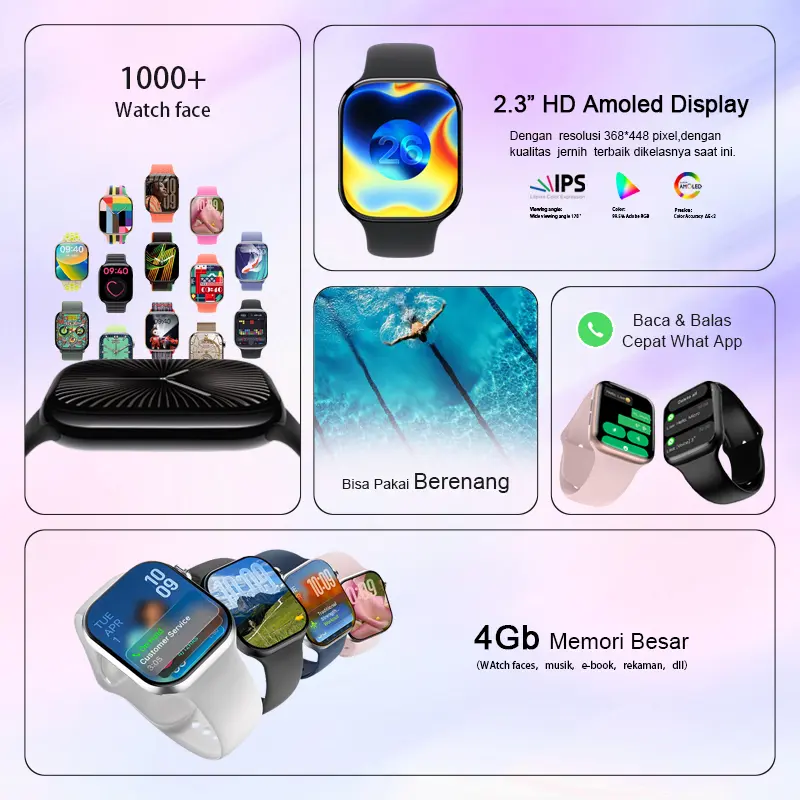 Bagus sekali, daya tahan baterai lama, bisa ganti tampilan jam sendiri.