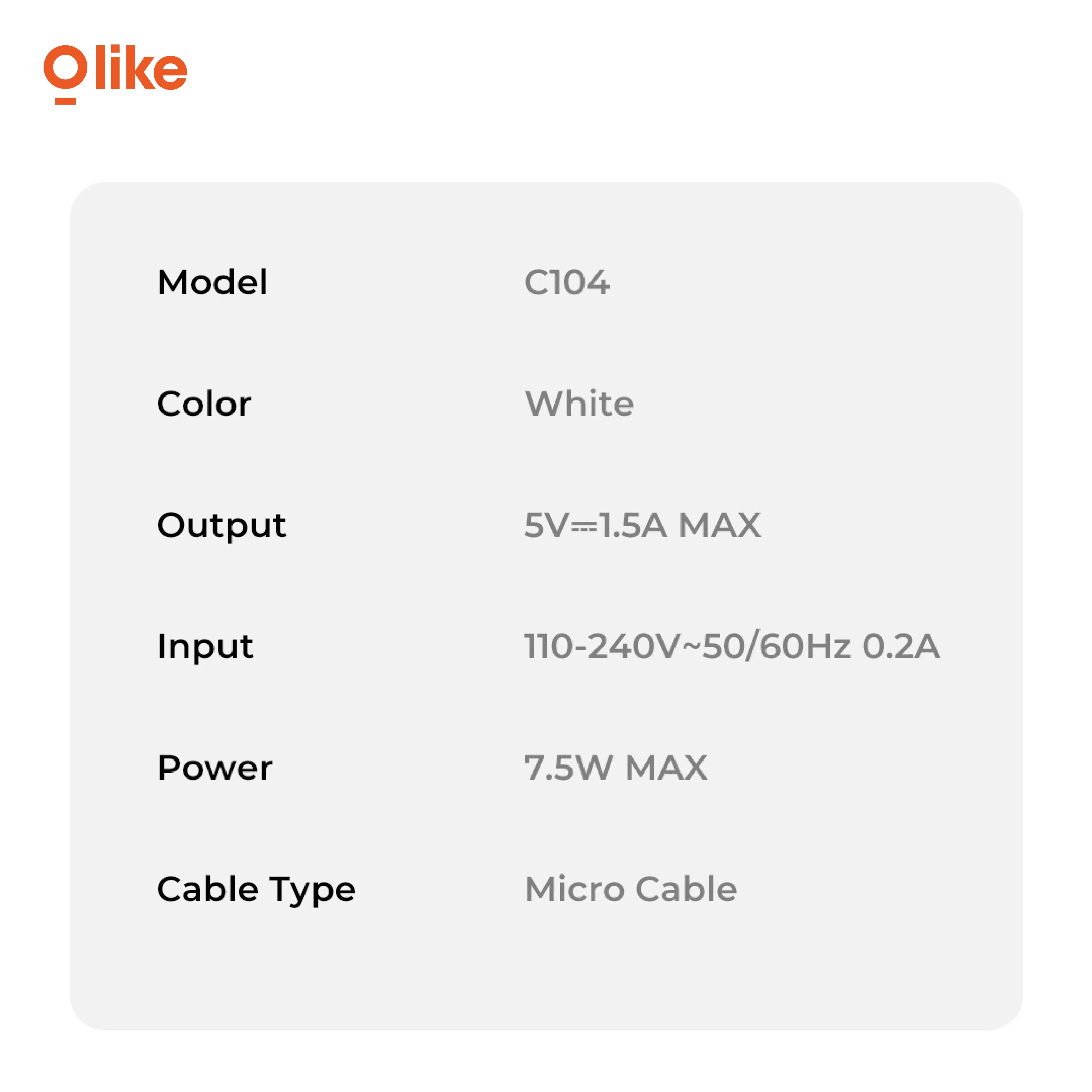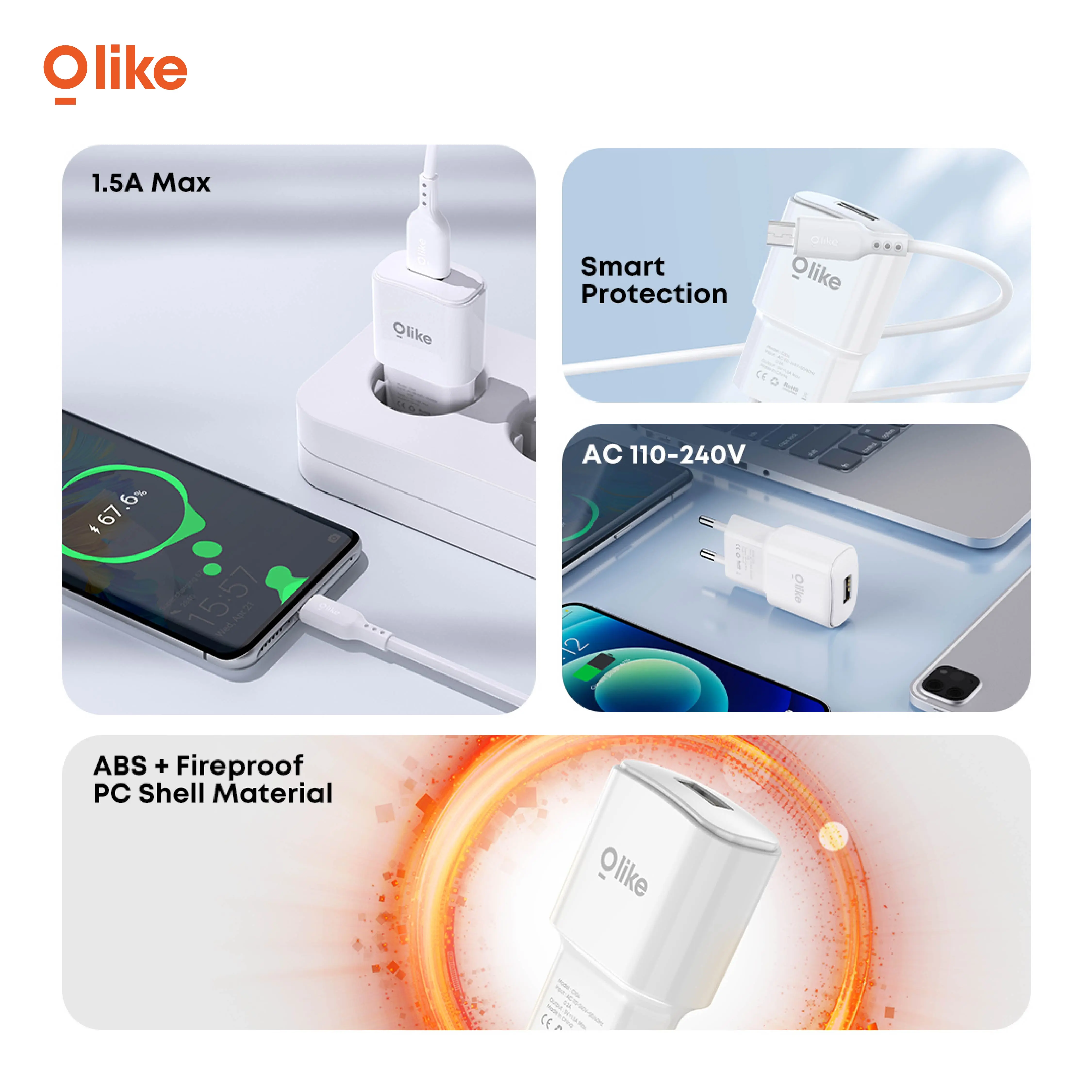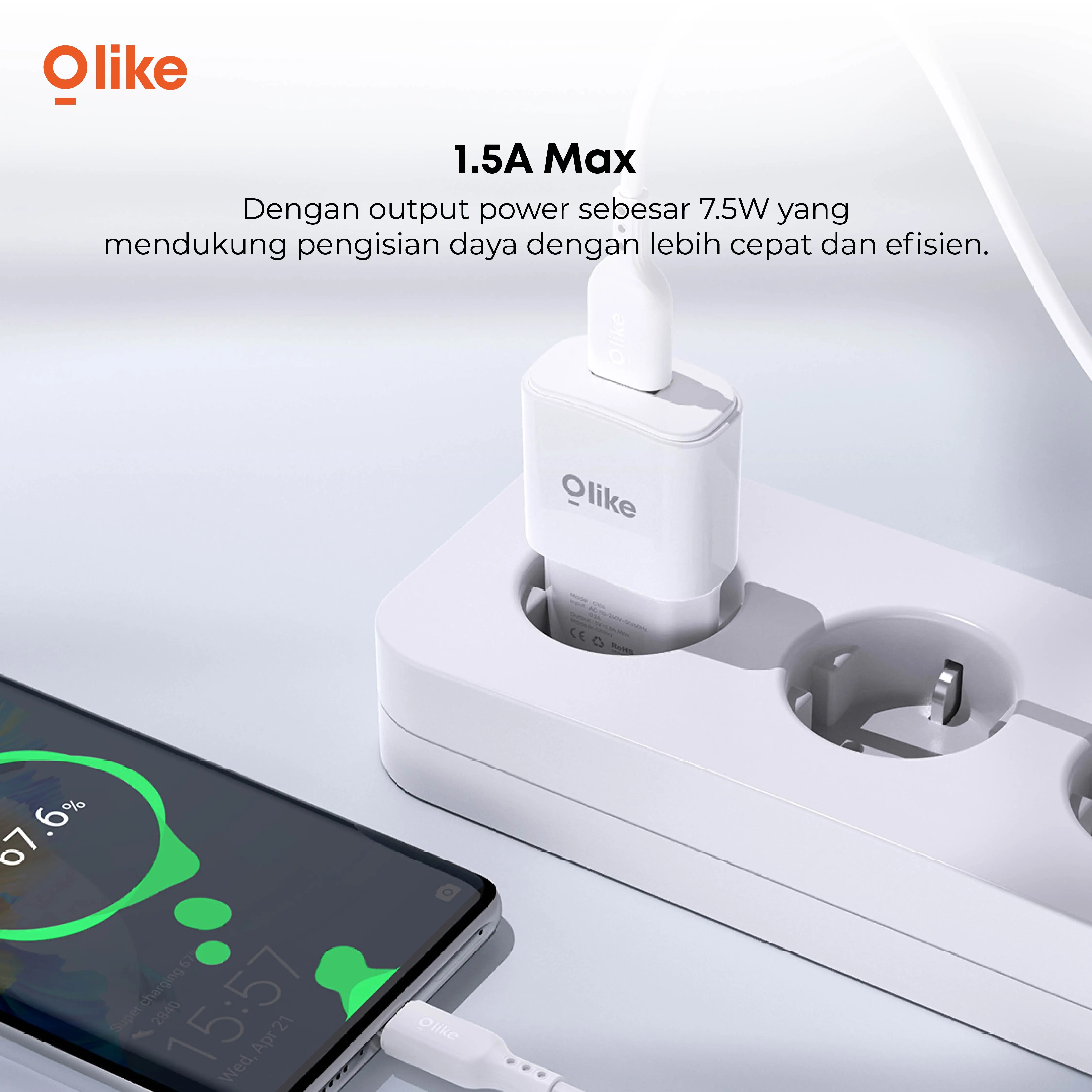 5. Olike Adaptor Charger 1.5A untuk TWS Speaker CCTV Smartwatch | Aman & Tahan Panas | Include Kabel Type C atau Micro | Garansi 1 Tahun