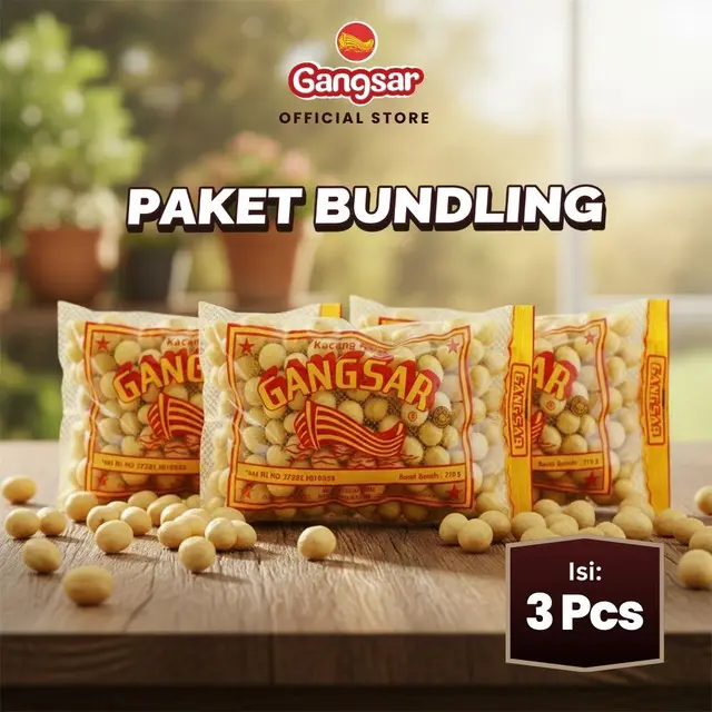 Paket ini berisi 3 pcs kacang atom Gangsar. Ideal untuk camilan keluarga atau stok di rumah. 🍫