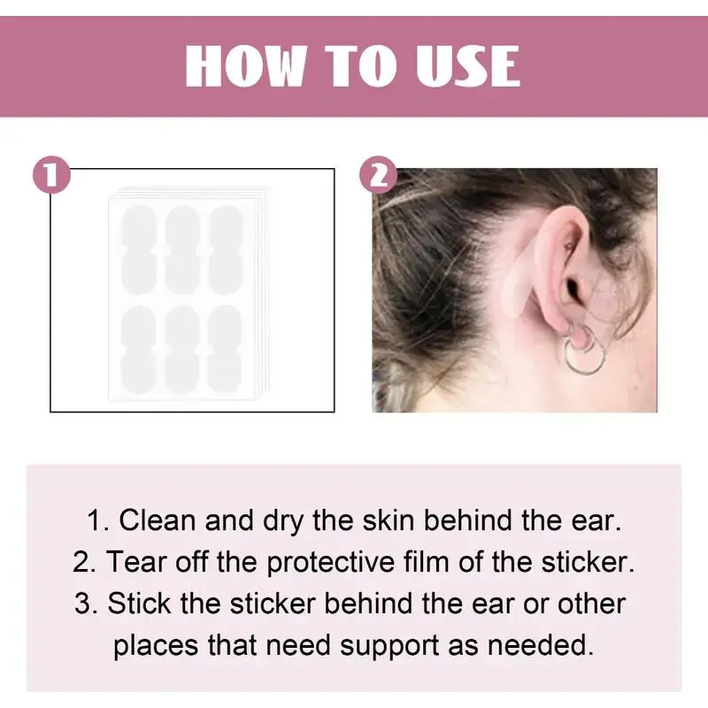 3.Tempelkan stiker di belakang telinga atau tempat lainyang membutuhkan dukungan sesuai kebutuhan.