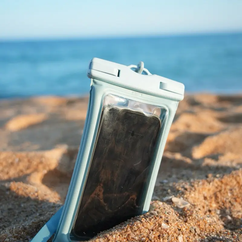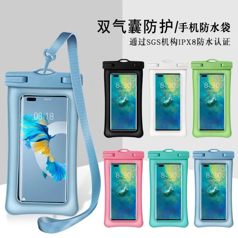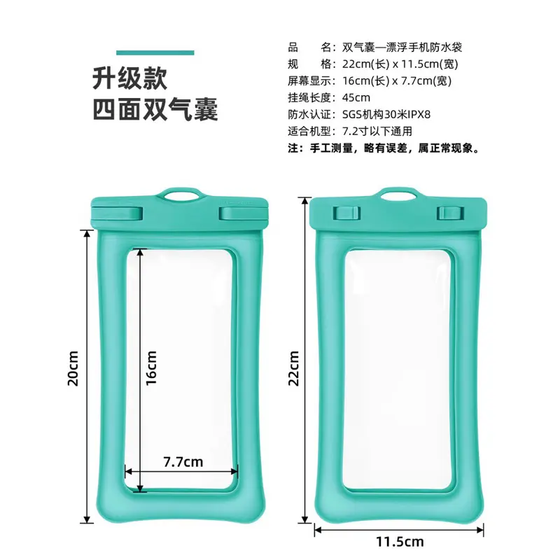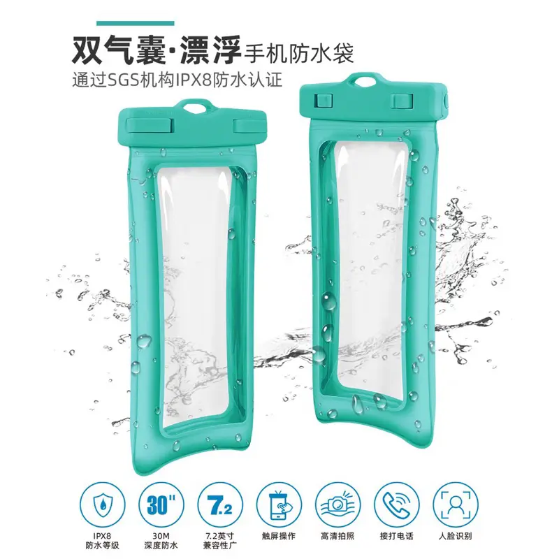 1. Spons ganda mengelilingi tas tahan air untuk mengurangi guncangan, memberikan dukungan daya apung pada ponsel saat digunakan di bawah air.