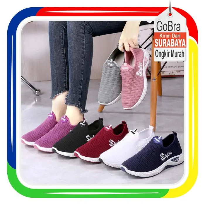 5. Gobra ♕ SEP106 (Tanpa Kotak) Sepatu Sneakers Wanita Polos Tanpa Tali 7 Pilihan Warna Simple Bahan Rajut Ringan Jogging Olahraga Sepatu Cewek Sport Sepatu Cewek Casual Style