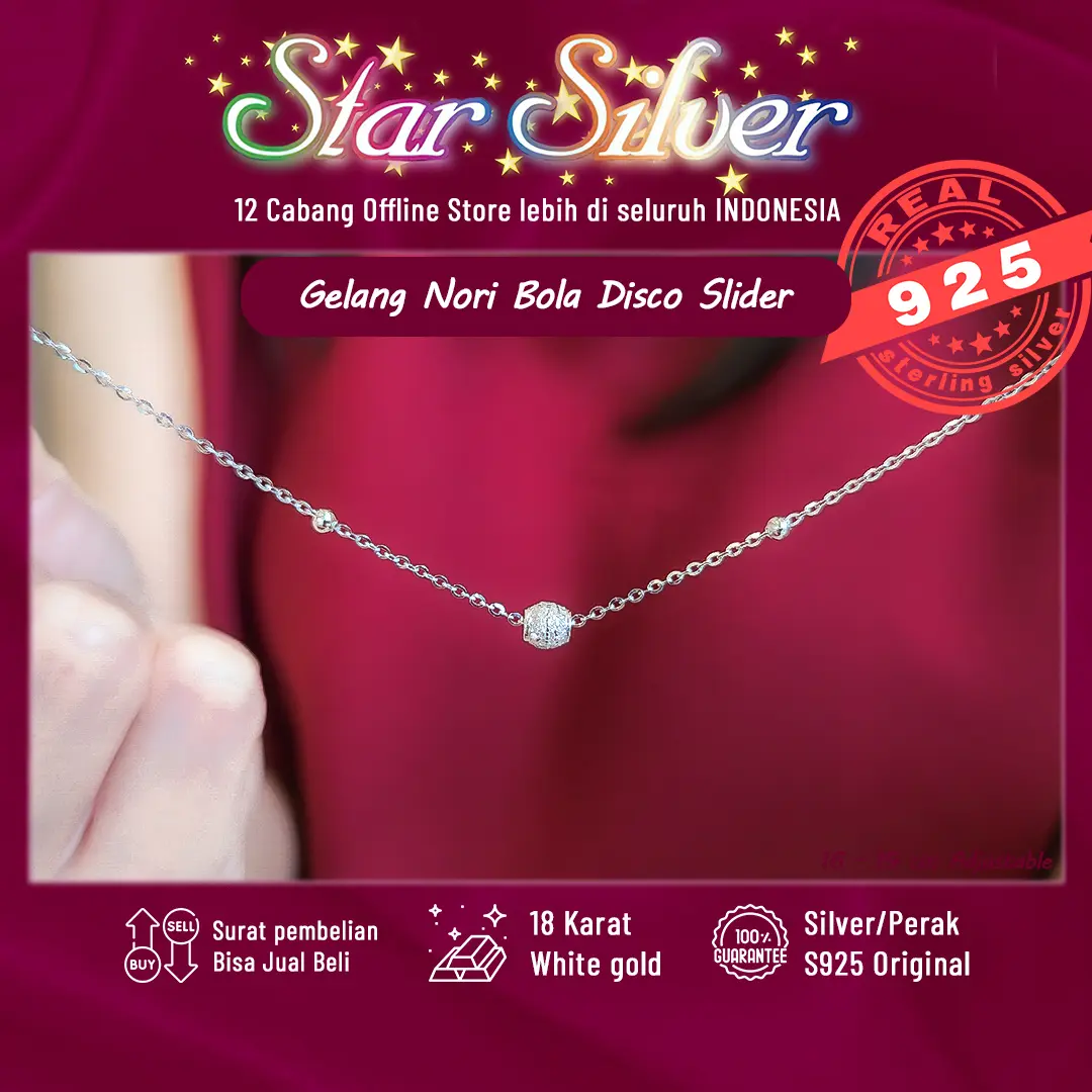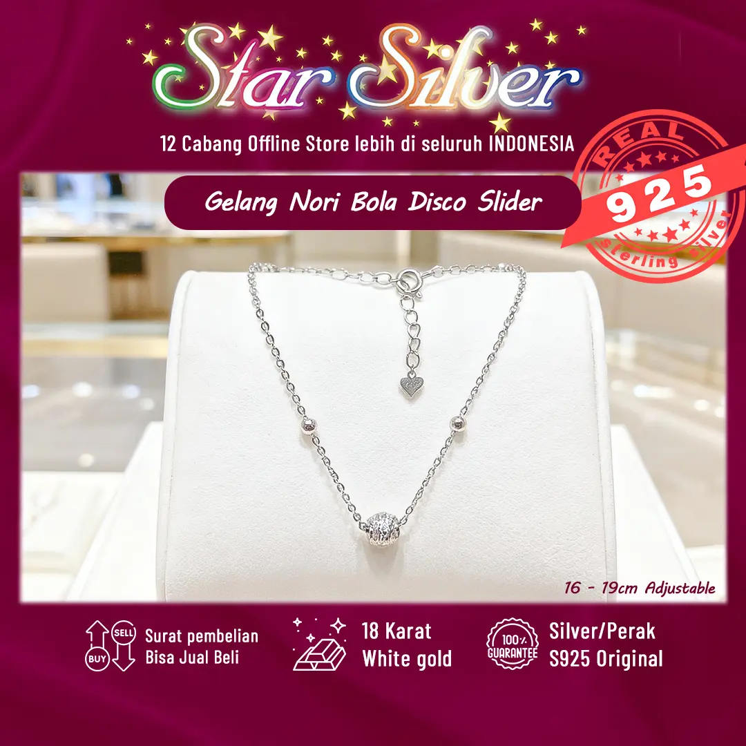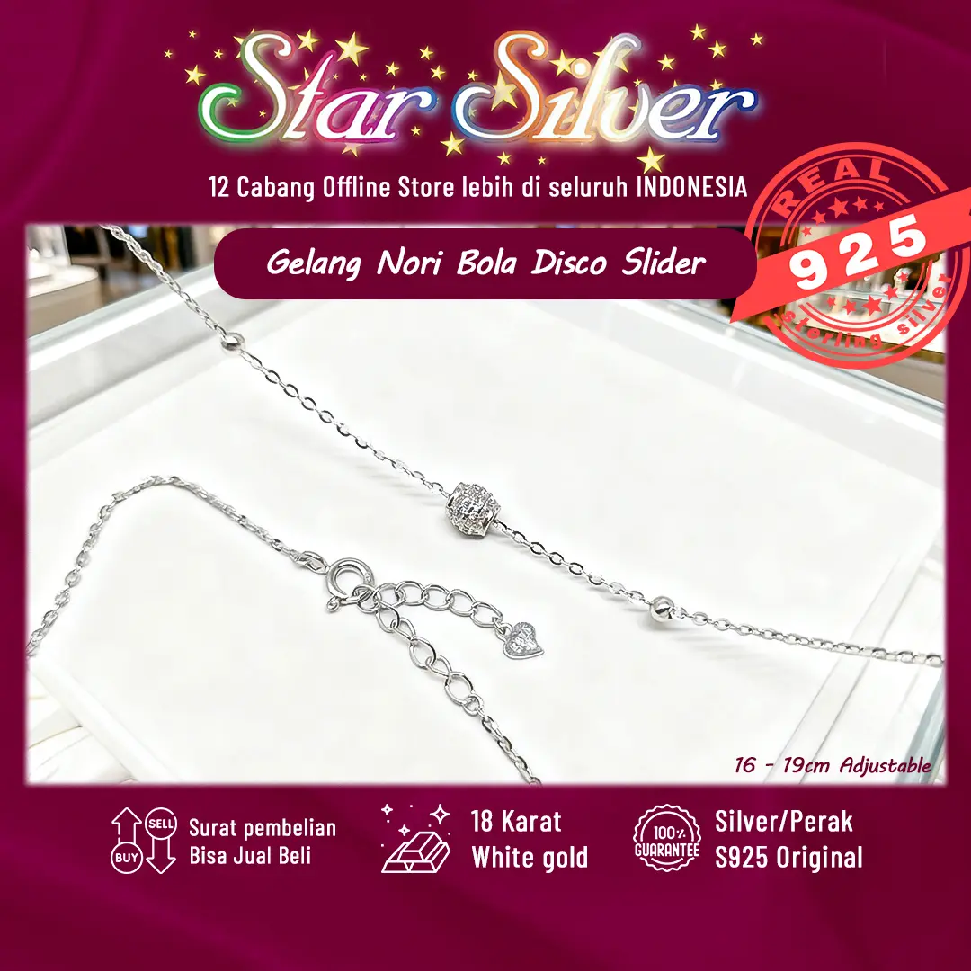 Gelang Tangan Nori Bola Disco Slider Star Silver Perak S9.25 Asli
