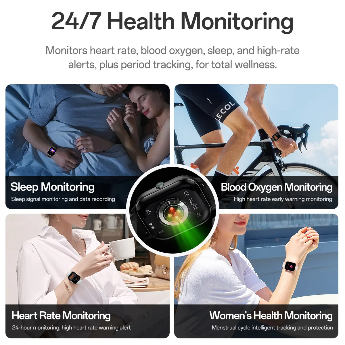 Pantau detak jantung, oksigen darah, tidur, suasana hati, dan stres secara real-time. Huafit A2 menjaga kesehatan Anda dengan penuh perhatian.