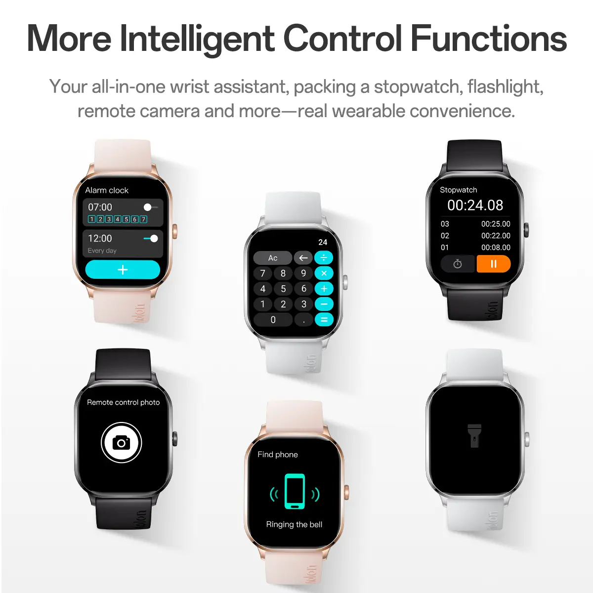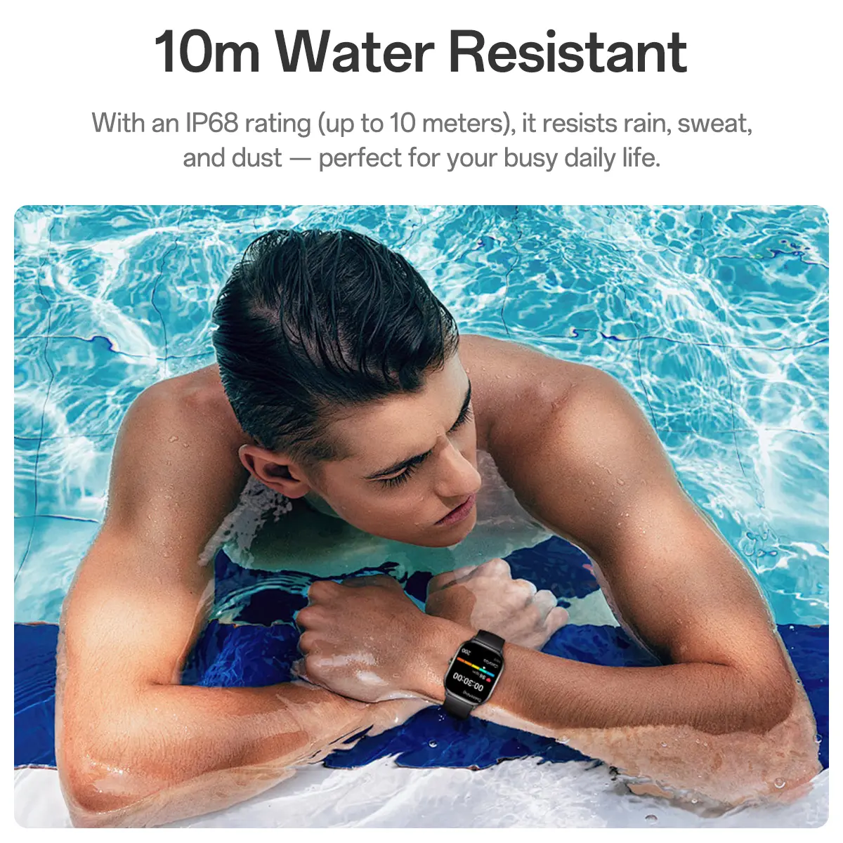 Tahan tekanan air hingga 10 meter, aman saat cuci tangan, terkena hujan, atau penggunaan sehari-hari. Dukungan panggilan dan notifikasi – terima/tolak panggilan langsung, lihat SMS serta notifikasi media sosial. Ganti tampilan jam sesuai gaya pribadi Anda. Angkat pergelangan tangan, layar akan menyala otomatis untuk melihat waktu dan informasi dengan mudah.