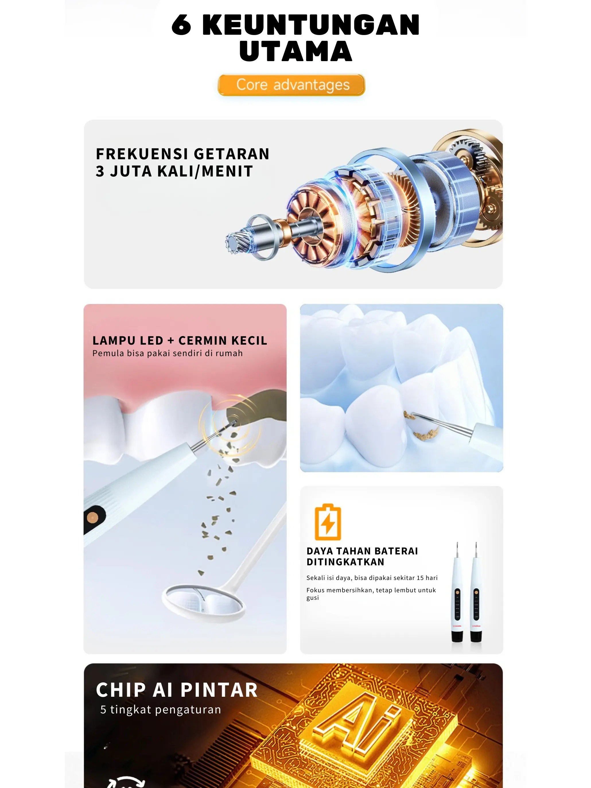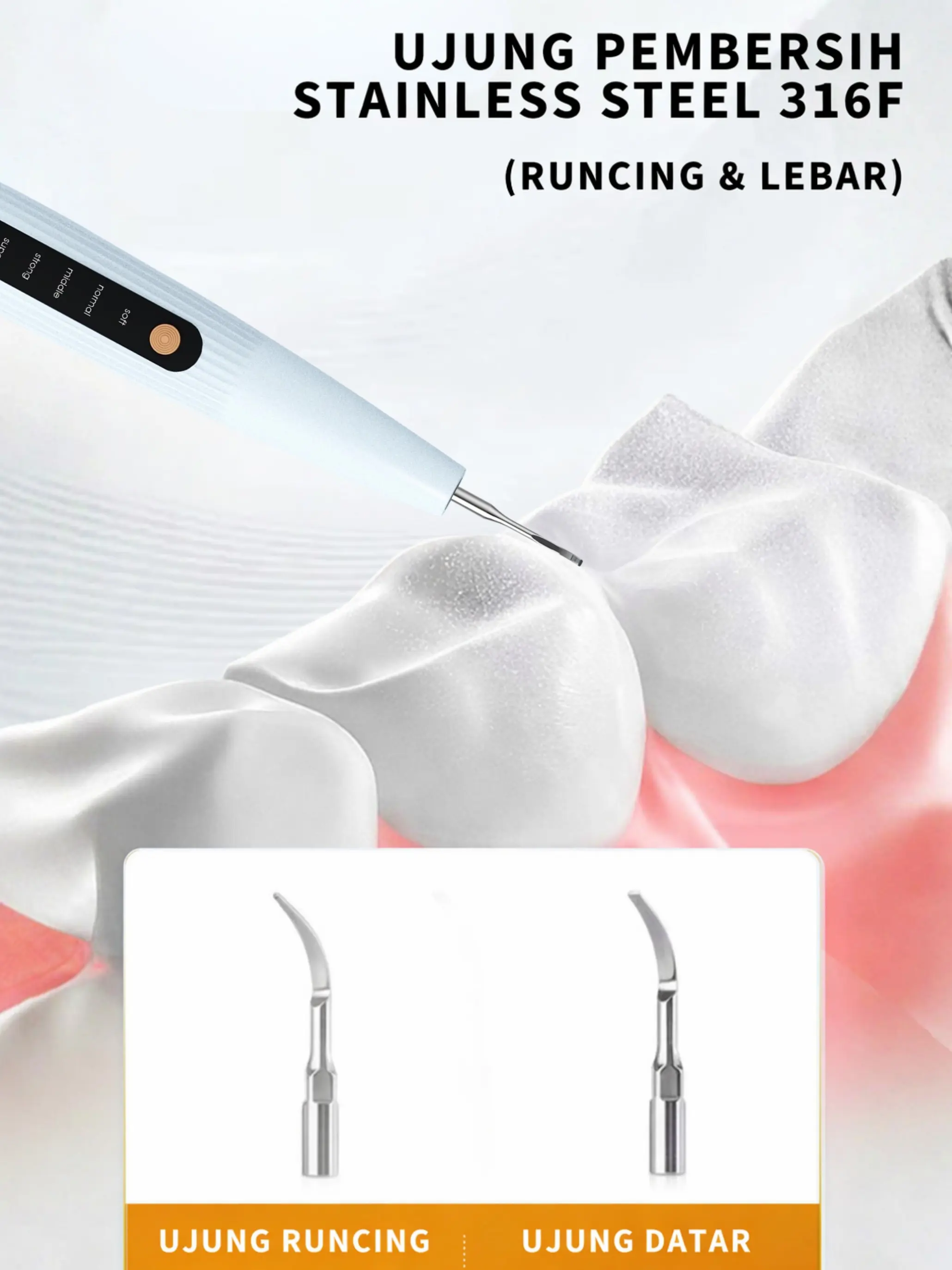 Produk sangat baik dan benar-benar berfungsi sesuai deskripsi, saya sudah pakai bersihkan karang gigi dan hasilnya sama kayak perawatan scalling dokter, tp harus sabar krn kita bukan dokter profesional jd pelan" saja