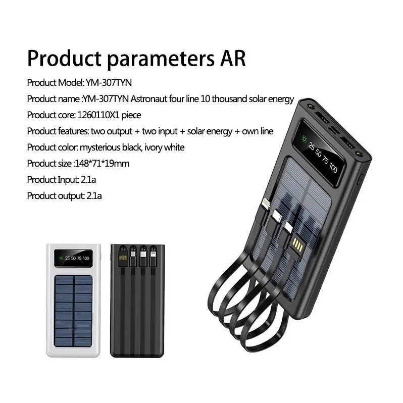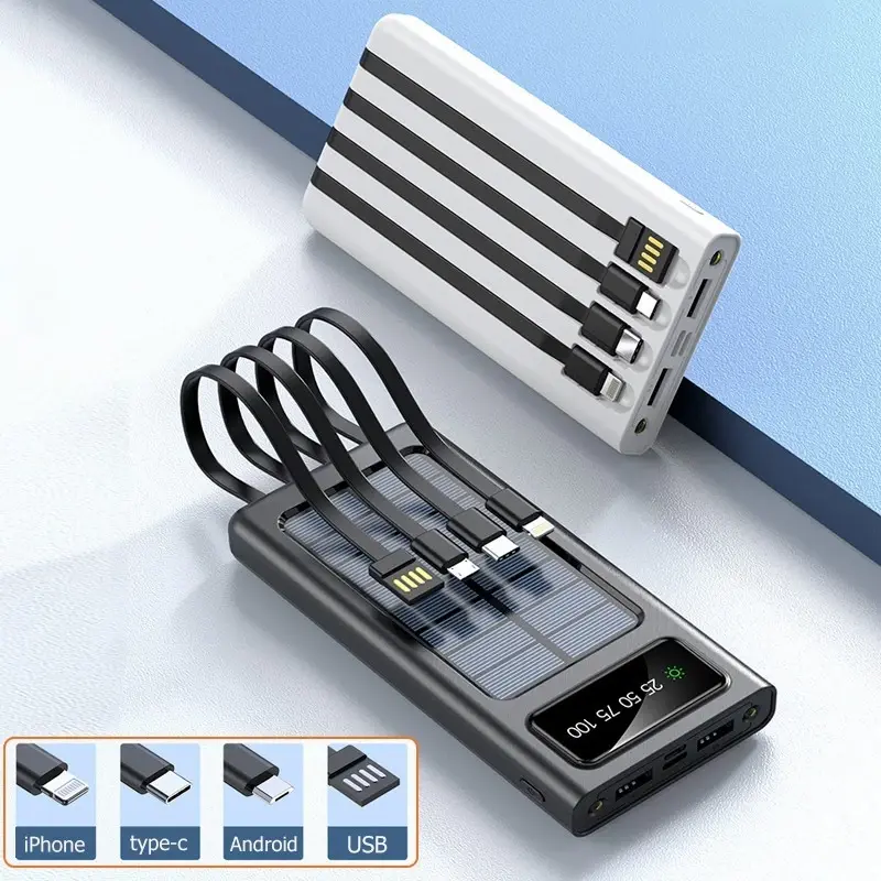Bank daya mini 100000mAh dilengkapi dengan 4 kabel, termasuk 3 output dan 1 input USB. Ini berarti Anda dapat mengisi daya beberapa perangkat secara bersamaan, cocok untuk orang yang sedang bepergian.