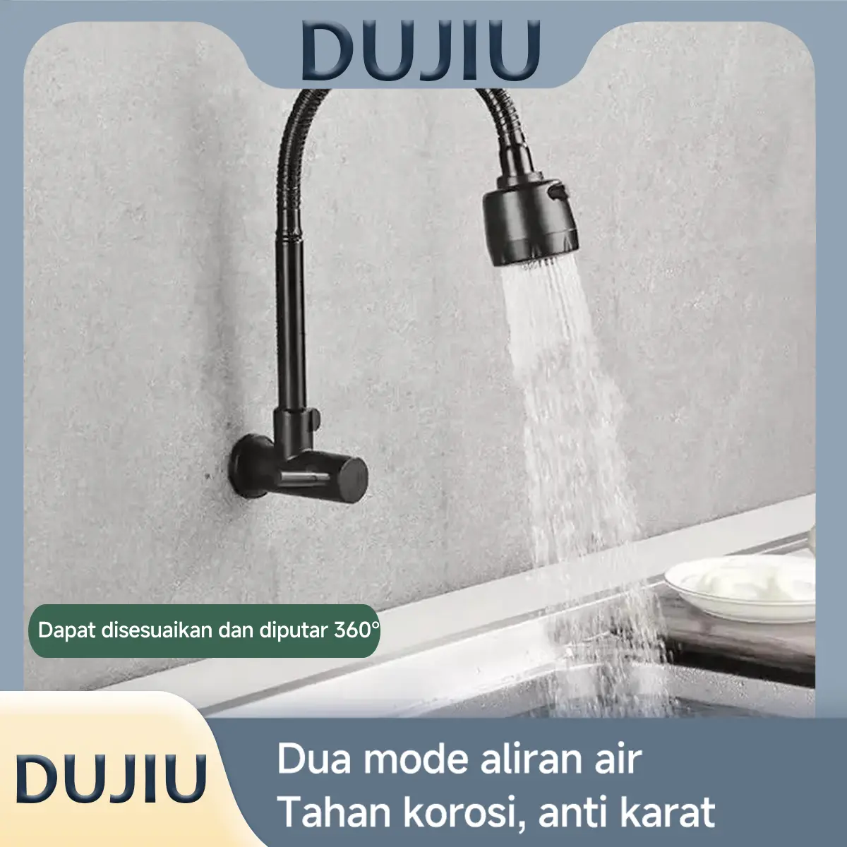 2026 Terbaru! Keran Air Dingin Hitam Putar 360° – Stainless Steel Anti Karat, Aliran Bisa Diatur, Anti Percik, Cocok untuk Balkon & Dapur | Ready Stock | Kirim Cepat