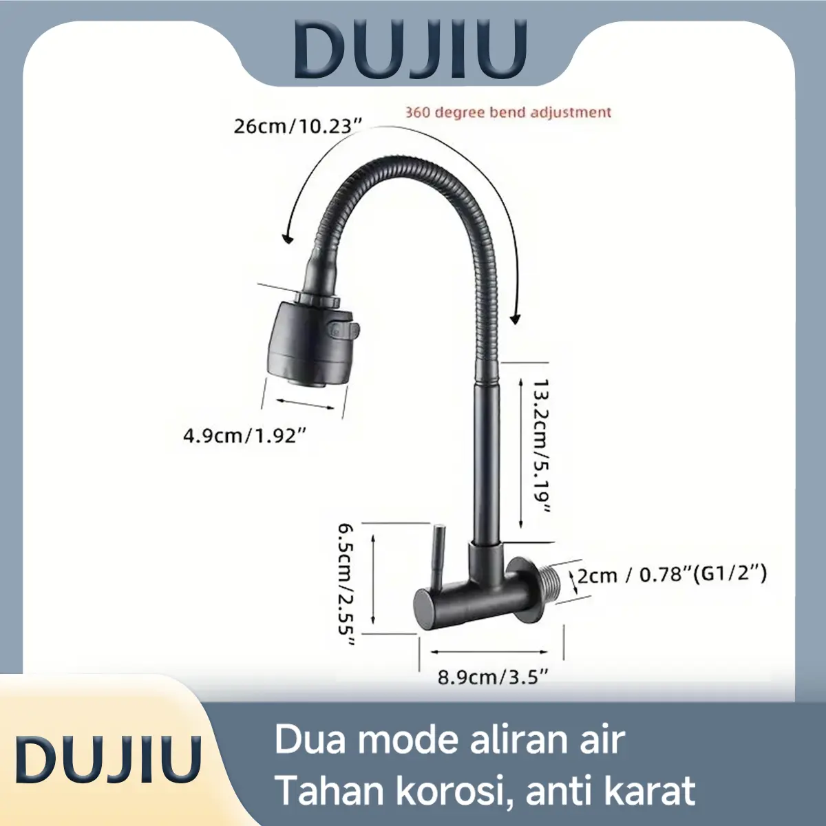·Putar 360 Derajat: Nikmati fleksibilitas di dapur dengan keran yang dapat berputar 360 derajat untuk menambah kenyamanan.
