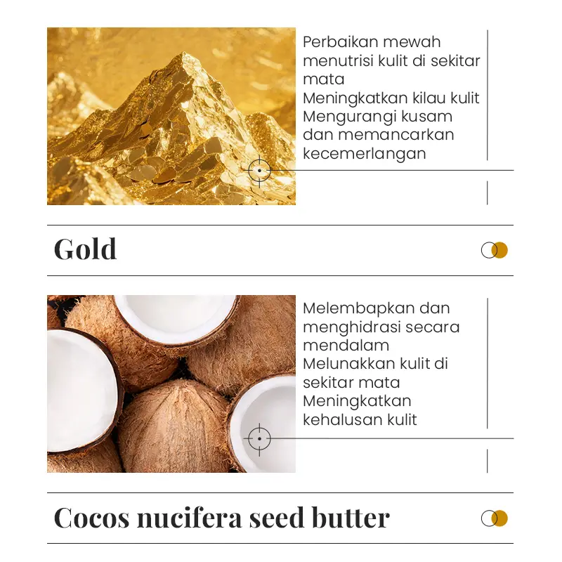 24K Gold : Masker mata gold untuk menyamarkan garis halus, memudarkan lingkaran hitam, serta melembabkan dan menutrisi secara mendalam
