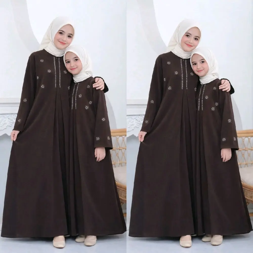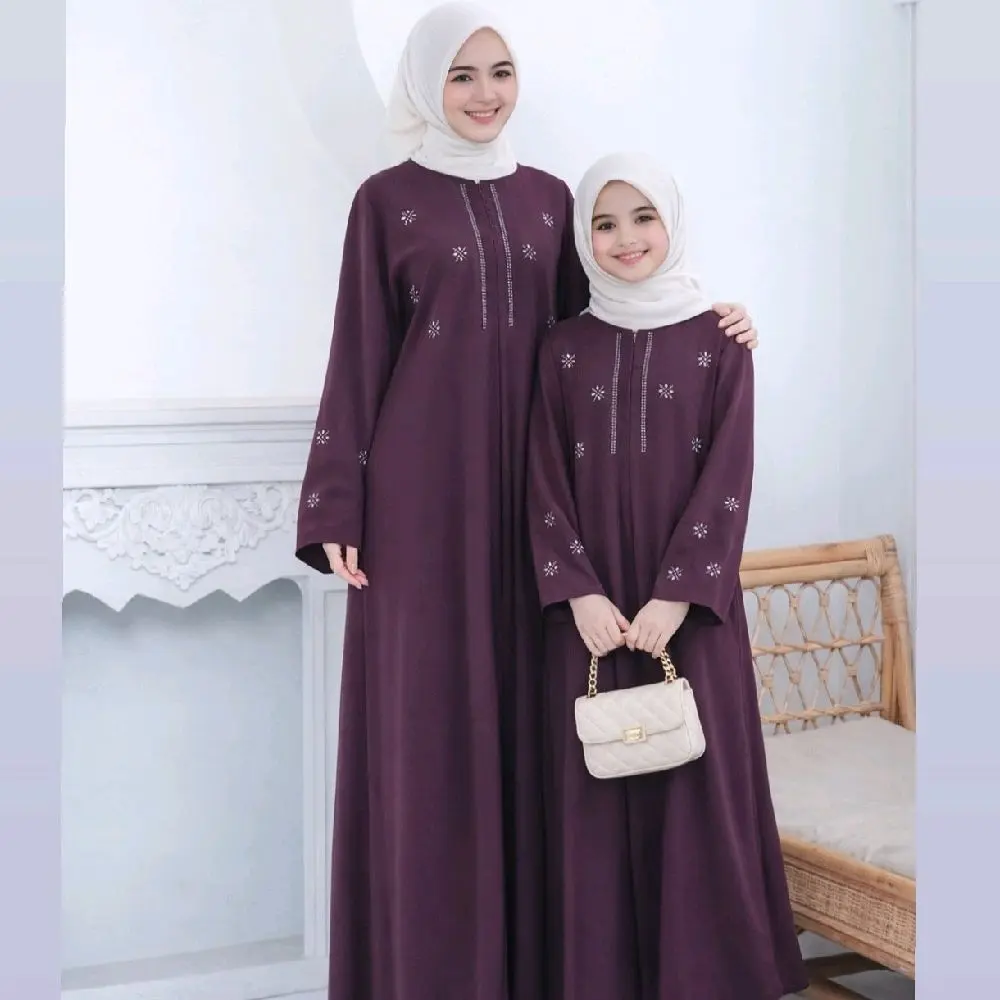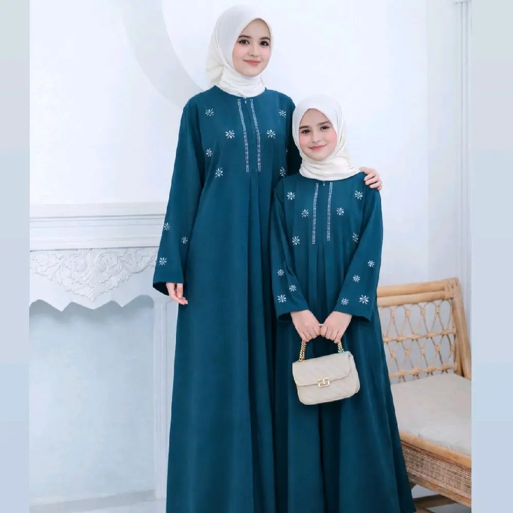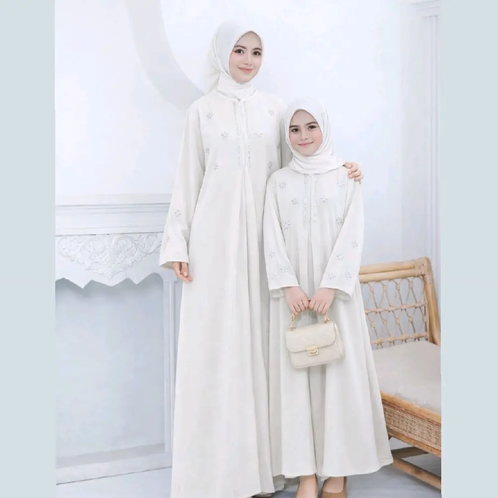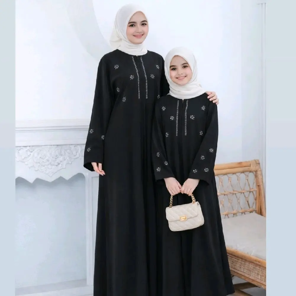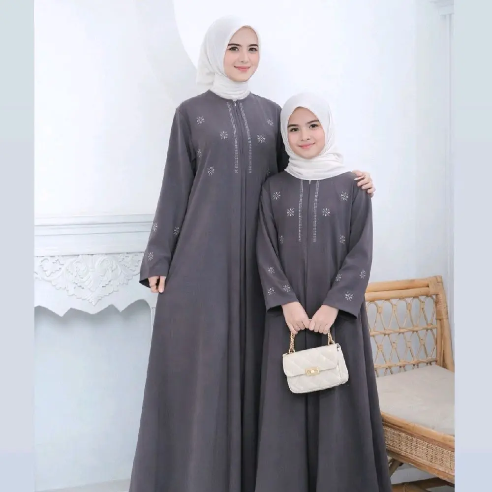 Abaya Couple Ibu Dan Anak Terbaru 2026 Lebaran Bahan Sabrina Silk Anti UV Mewah Elegant Gamis Model Kekinian