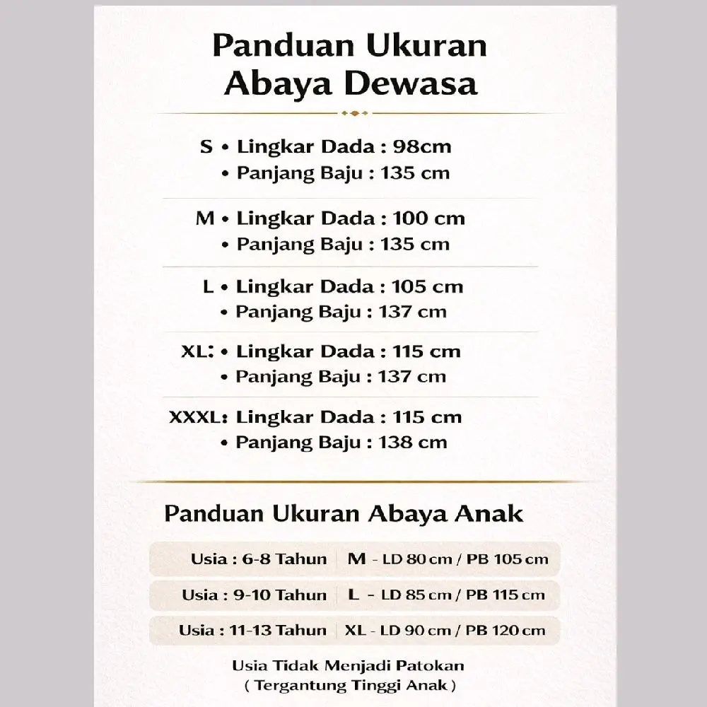 • Panjang Baju : 135