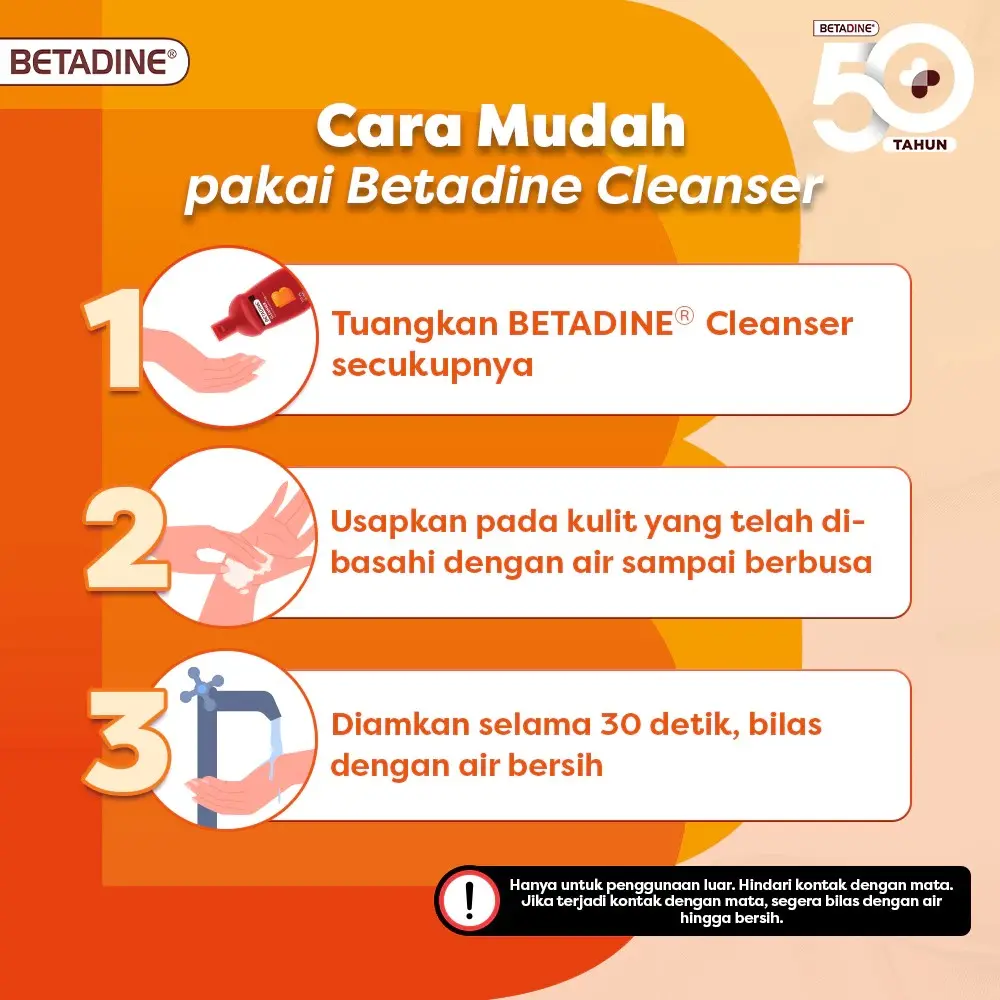 - Tuangkan BETADINE Antiseptic Skin Cleanser secukupnya