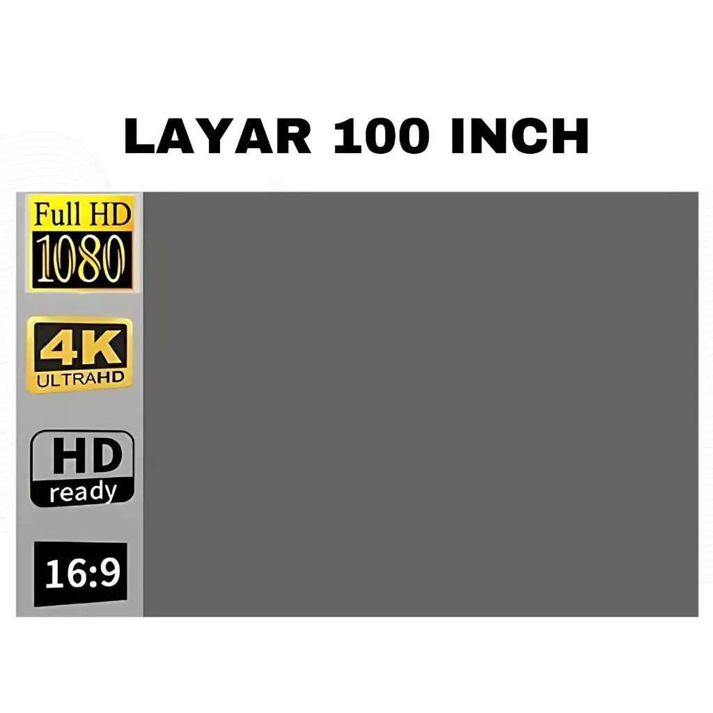 UMI Layar Proyektor Portabel 100 Inch 80 Inch Projector Screen 16:9 – Gray 4K Anti-Glare (Hanya Layar)