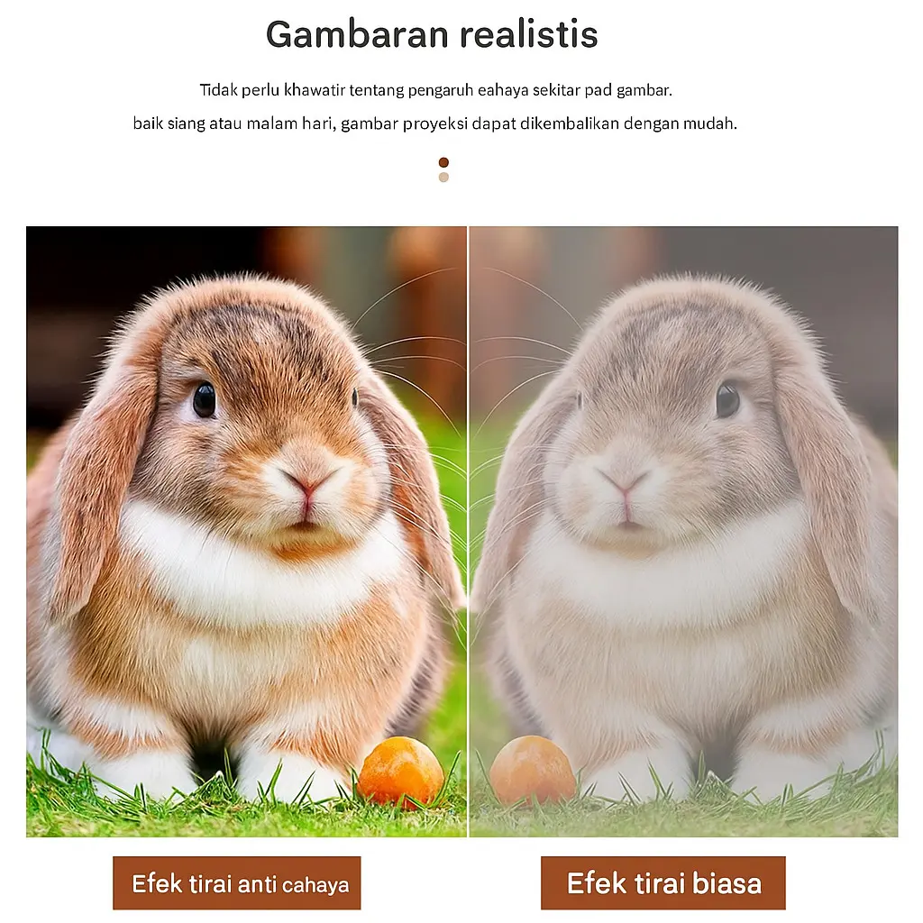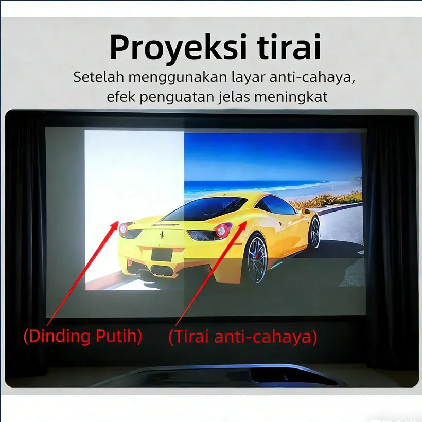 Ukuran: 100 Inch (221x125 cm)  Ukuran:  80 Inch (177x100 cm)  100% bahan bebas kerut Tidak Ada Lipatan Sudut Pandang Lebar 160 Di mana pun Anda duduk, Anda dapat melihat gambar dengan jelas. Tidak peduli berapa banyak orang dalam keluarga, Anda tidak perlu khawatir tidak dapat melihat layar. Portabel dan mudah dipasang Mudah dilipat, tepi yang diperkuat Ringan, Tanpa Lipatan Ingin menonton film di rumah malam ini? Layar proyektor Vistek Vistek menampilkan struktur tegangan hitam surround yang lebih luas yang menyediakan Layarnya lebih halus, hitam matte dan lurus tanpa kendur, dan efek persegi sangat cocok dengan kain yang tidak kusut, berubah bentuk, atau kusut. Biarkan Anda dengan mudah memiliki home theater Anda sendiri. Biarkan Anda dengan mudah memiliki home theater Anda sendiri. Dengan layar proyektor home theater, Anda akan mendapatkan kejernihan dan dampak yang mengesankan. fitur: 1. Warna-warna cerah dan gambar besar. Layar proyektor kami mendistribusikan cahaya yang diproyeksikan secara merata, Anda akan merasakan kenikmatan visual yang sempurna dengan reproduksi gambar dan reproduksi warna terbaik. 2. Kain tidak kusut.Kain tidak kusut. Mudah dipasang dengan kait atau tali, bentuk persegi panjang. Tapi tidak ada lipatan. Ini juga mendukung pencucian tangan. (Jangan dicuci dengan mesin) dan setrika dengan api kecil. 3. Menonton film di bioskop portabel Dapat dilipat sekecil mungkin, tidak memakan tempat dan mudah dibawa kemana-mana. Mudah untuk diangkut dan diatur untuk perjalanan. Syarat Klaim Garansi: 1. Produk masih dalam masa garansi sejak tanggal penerimaan. 2. Wajib menyertakan video unboxing (tanpa edit dan tidak terpotong) sebagai bukti. 3. Video unboxing harus menunjukkan kondisi paket saat pertama kali dibuka. 4. Klaim garansi berlaku untuk kerusakan pabrik, bukan akibat kesalahan penggunaan. 5. Klaim tanpa video unboxing tidak dapat diproses. Simpan video unboxing hingga produk dipastikan berfungsi dengan baik ya, Kak! Jika ada kendala, bisa langsung chat kami. Kami siap bantu dengan ramah dan cepat.
