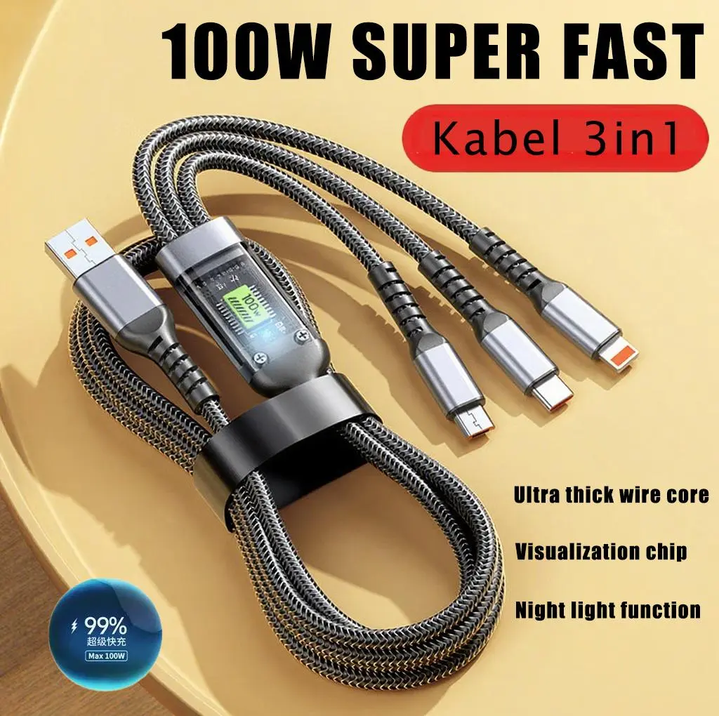 Kabel 3 in 1 dengan kualitas premium untuk pengisian daya yang stabil