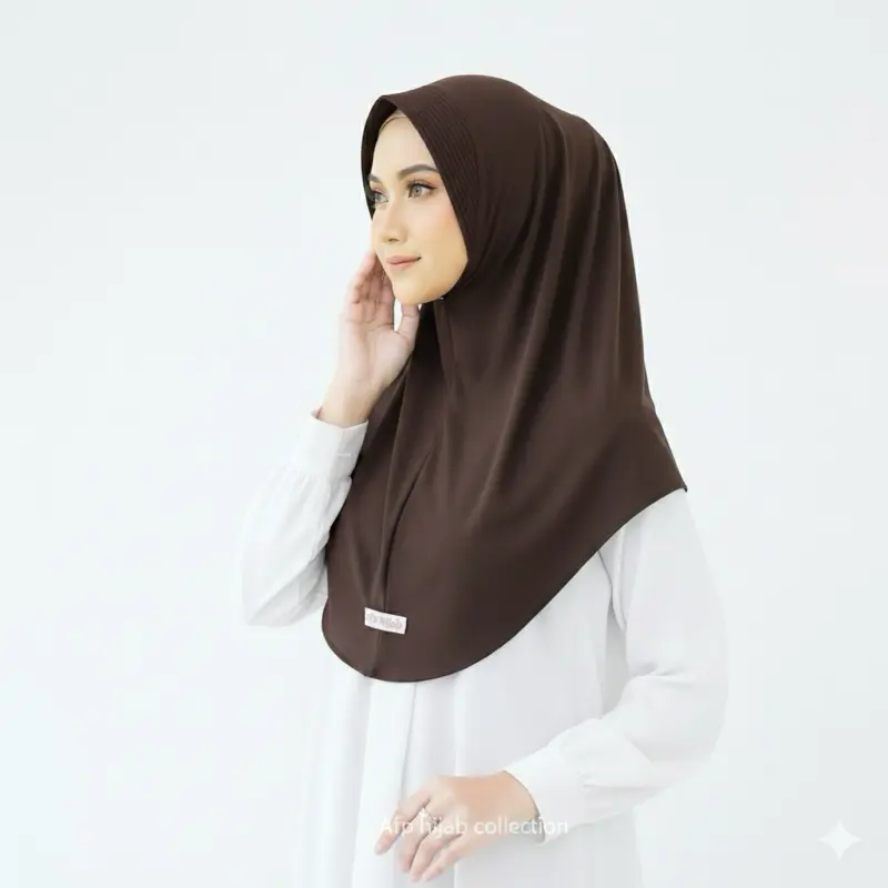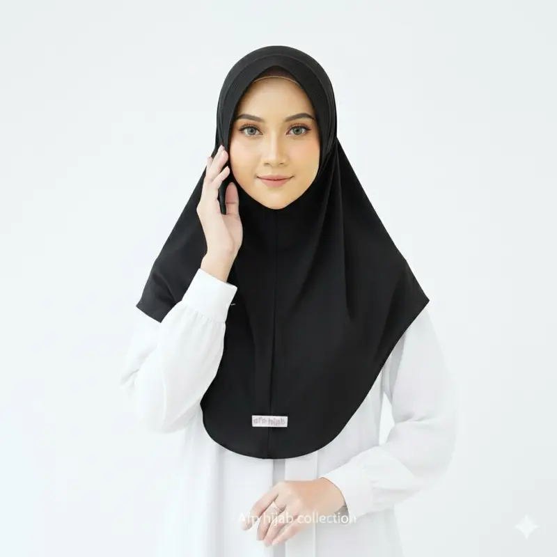 Bergo instant yang praktis dan nyaman untuk tampilan rapi setiap hari. Desain inner menyatu dengan model Melayu, sehingga mudah dipakai tanpa perlu tambahan inner.