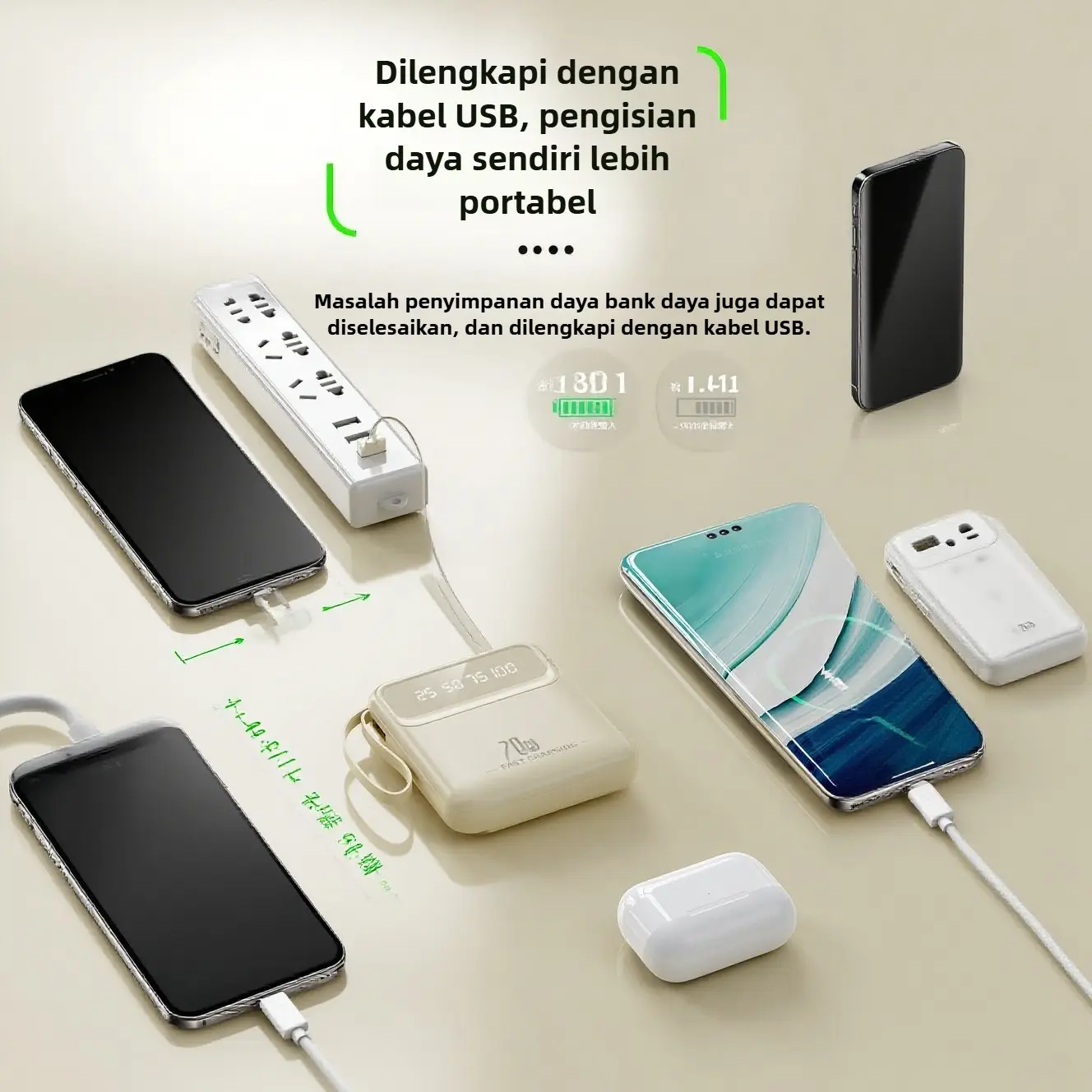 【Universal Compatibility】memberikan kekuatan dan berbagi kabel dengan keluarga, teman, rekan kerja, atau bahkan orang asing! bekerja dengan sebagian besar perangkat, dan port USB untuk koneksi eksternal.