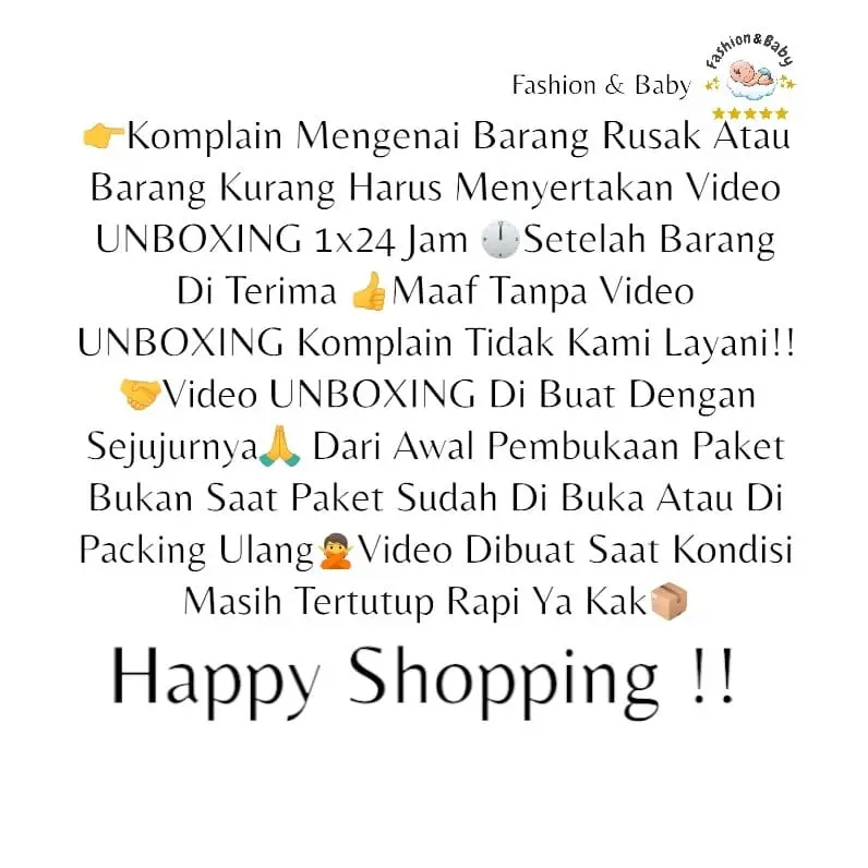 *Jika ingin Komplain Barang Kurang, Salah Kirim atau Rusak WAJIB ada video unboxing.