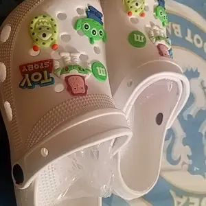 Warna putih yang sederhana ditambah hiasan kartun, cocok untuk dipakai sehari-hari atau dipasangkan sebagai pasangan.