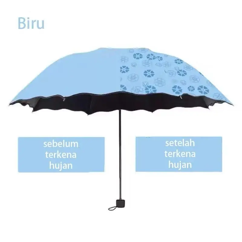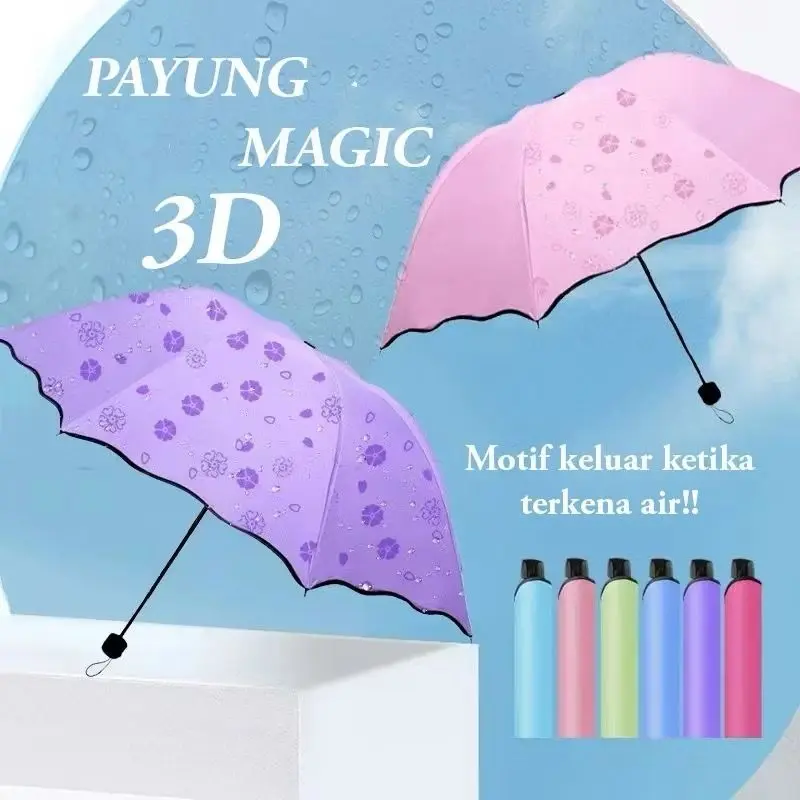 Payung 3D JCbrella-ers Magic berkualitas, dilengkapi sarung & lapisan hitam anti UV. Motif timbul saat terkena air. Cocok untuk segala kalangan. Lapisan hitam melindungi dari sinar matahari. Gagang kokoh, tidak mudah patah. Tombol tutup & buka sangat nyaman, tidak melukai tangan.
