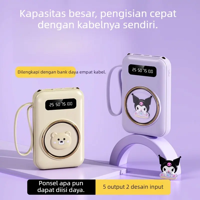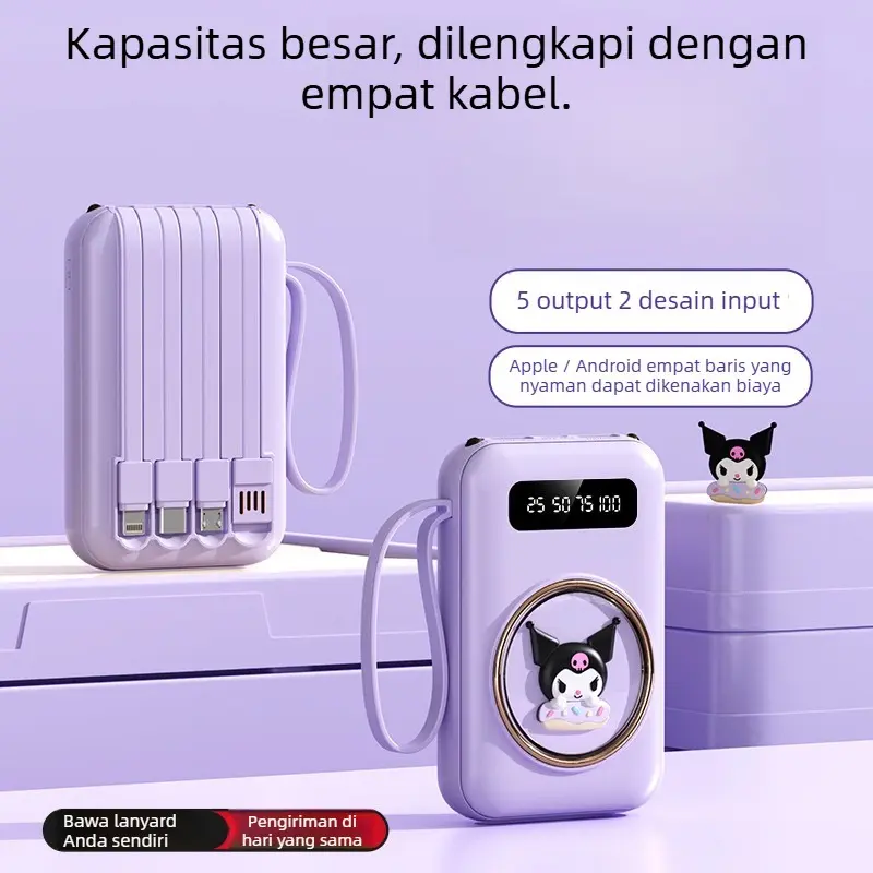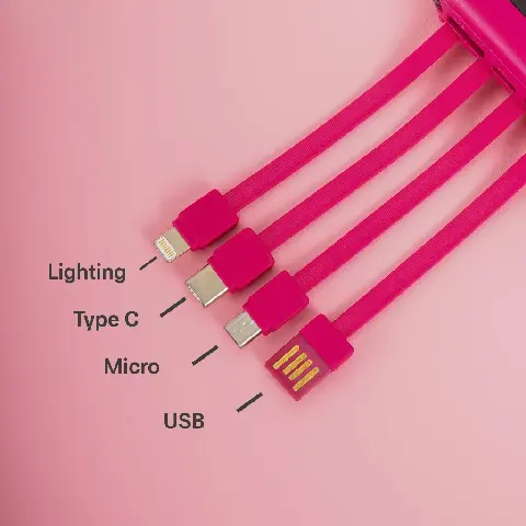 Built-in 4-in-1 Cable – Lengkap dengan Lightning (iPhone), USB-C, Micro USB, dan USB-A, kompatibel untuk berbagai perangkat.