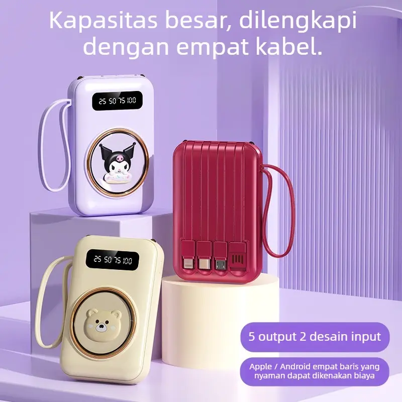 *Built-in 4 Charging Lines - powerbank portabel dilengkapi dengan 4 jalur data yang berbeda, yaitu lightning, USB, Micro usb, tipe-c, yang dapat mengisi 4 perangkat berbeda secara bersamaan. Ini juga memberi Anda data USB umum kabel, sehingga Anda dapat membaginya dengan keluarga atau teman Anda di mana saja.