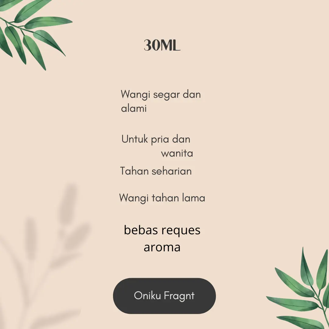 Parfum 30ml Pria & Wanita ini hadir dengan aroma tahan lama yang cocok untuk pria dan wanita. Parfum ini dirancang khusus untuk memberikan keharuman yang bertahan hingga seharian, sehingga Anda dapat menikmati kesegaran sepanjang hari.