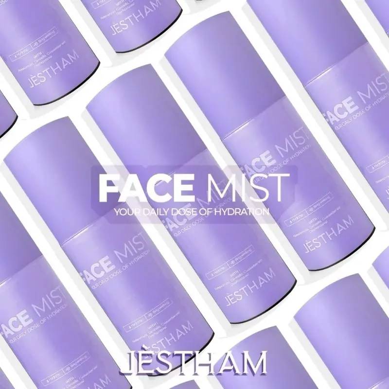 Jestham Face Mist memiliki kandungan seperti Niacinamide, centella, cucumber ext dephantenal