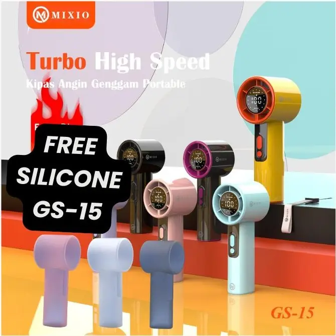 (Paket Hemat) - MIXIO GS-15 Mini Fan Portable High Speed Turbo + Silicon Case GS-15