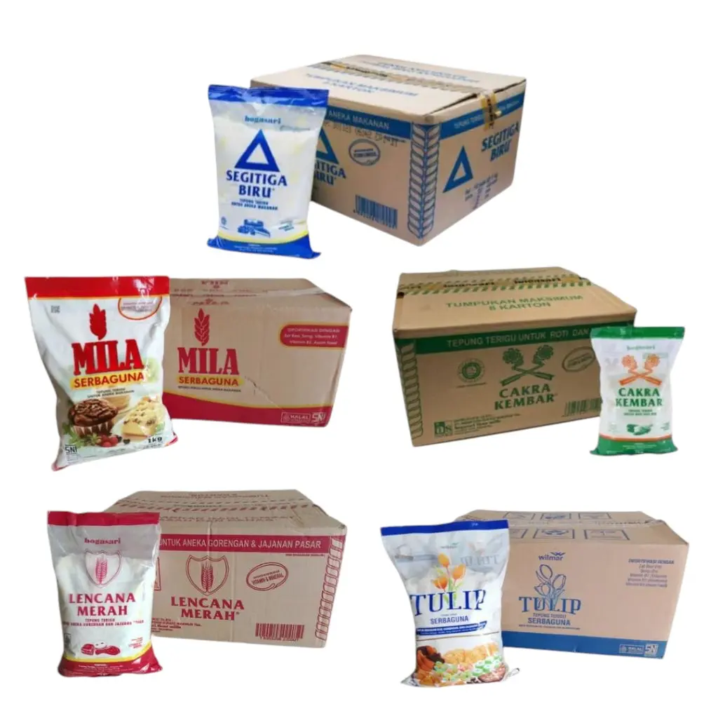5. Tepung Terigu 1kg 1 Dus / Teung Trigu Cakra Kembar Segitiga Biru Tulip Mila 1 Karton