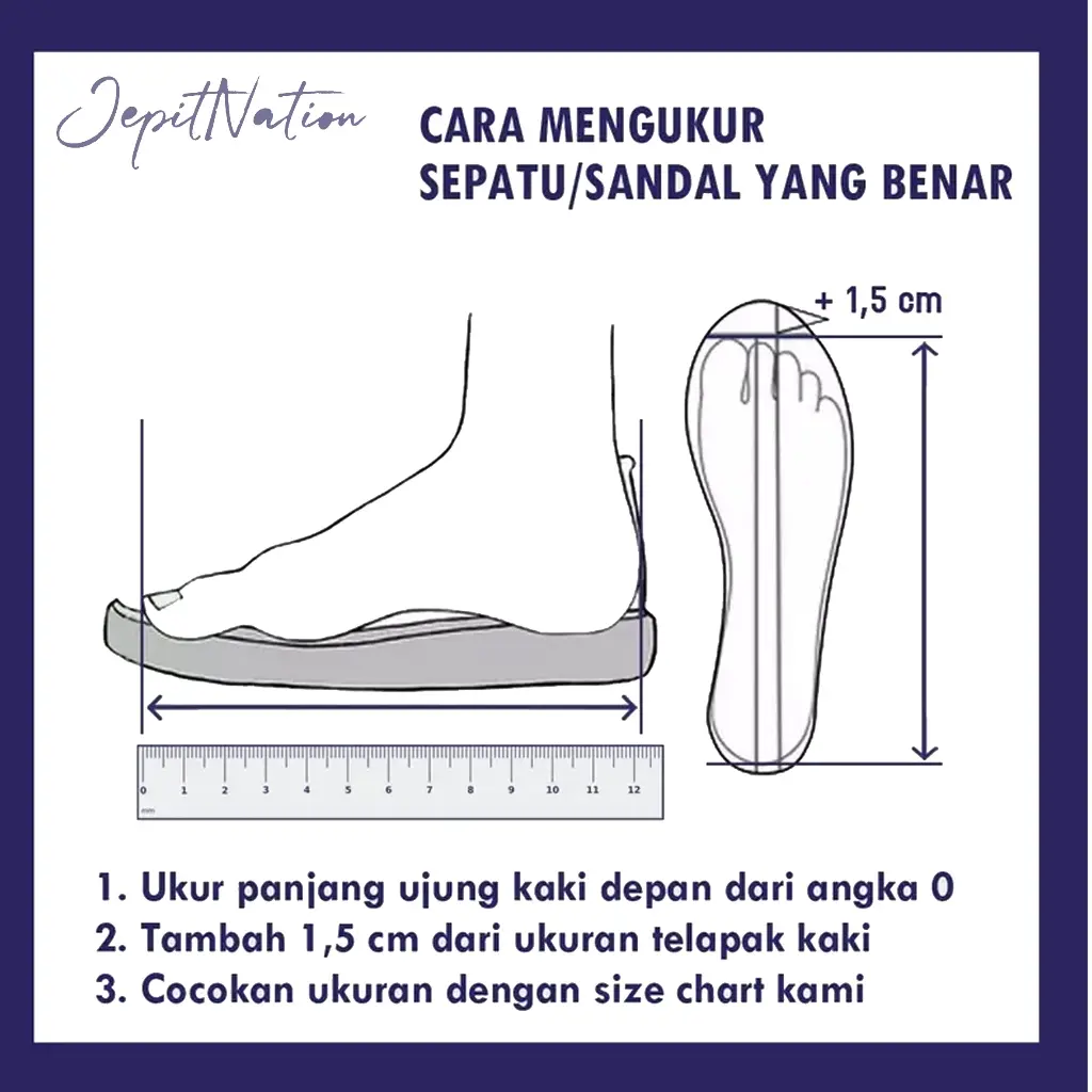 Harap membeli ukuran yang lebih besar dari panjang kaki.