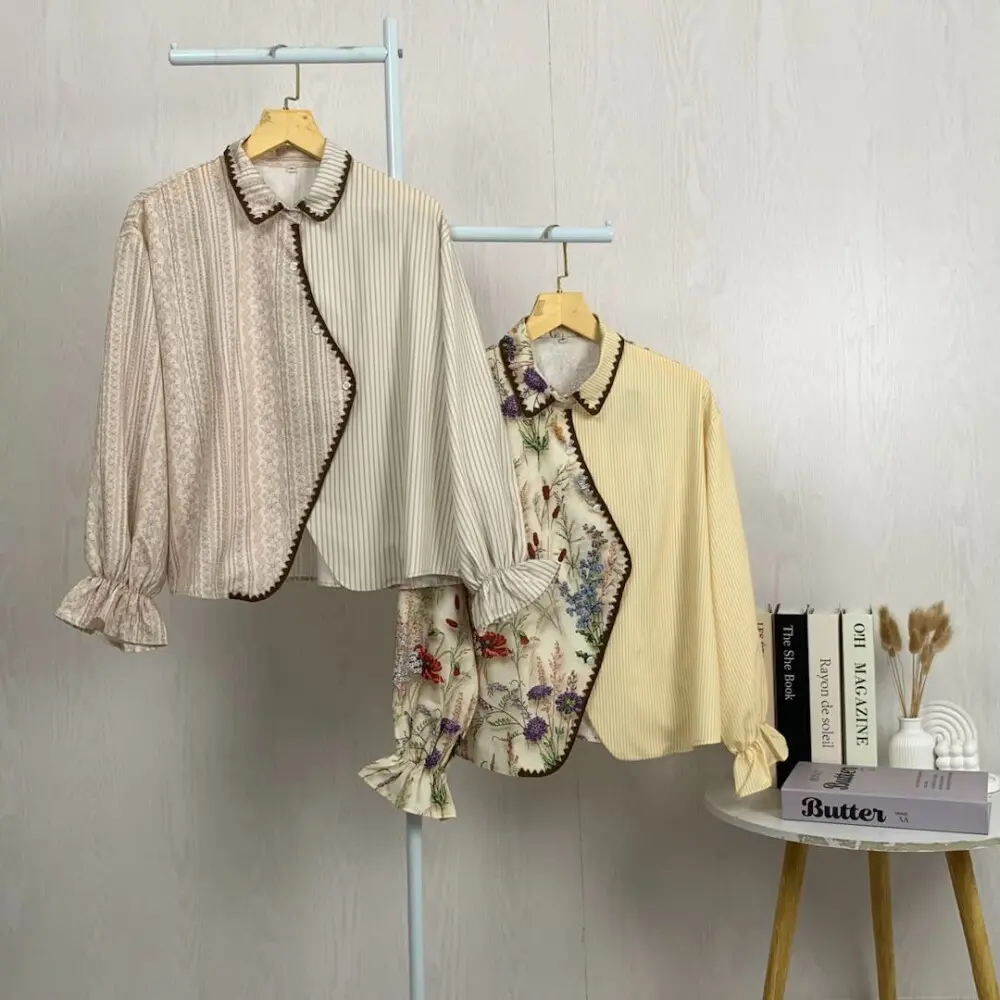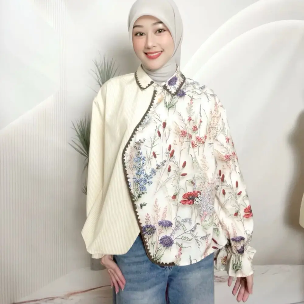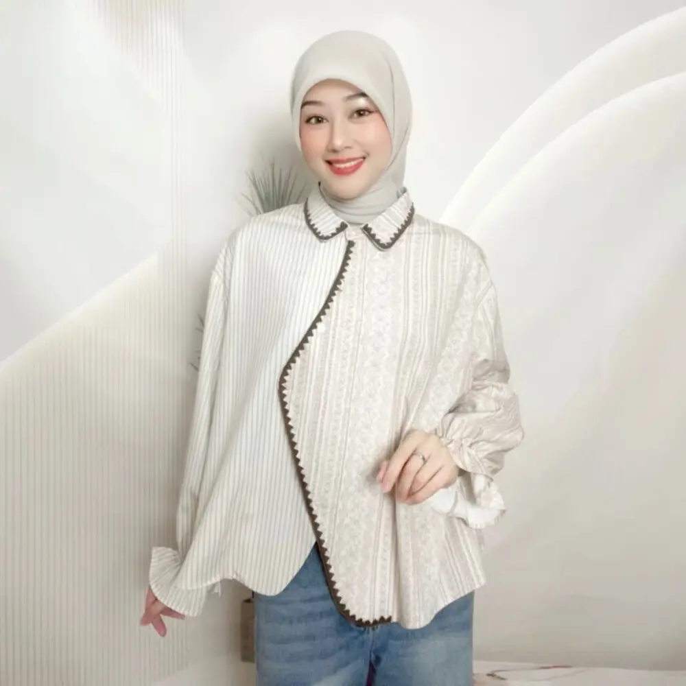 Asaya Atasan Kemeja Pakaian Wanita Motif Bergaris Mode Korea Terbaru