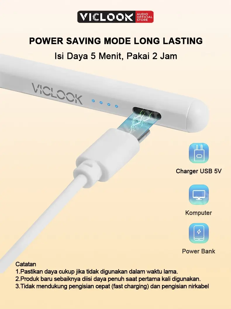Mode hemat daya, 5 menit isi daya untuk 2 jam pemakaian, port Type-C universal
