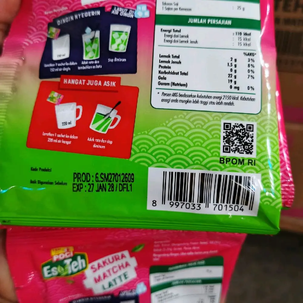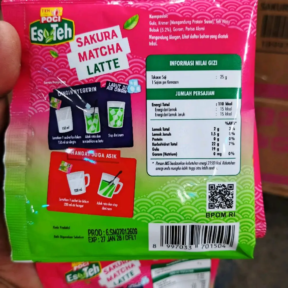 Es Teh Poci Sakura Matcha Latte 1 Rcg isi 10 Pcs Larut di Air Dingin Rasa Matcha Latte