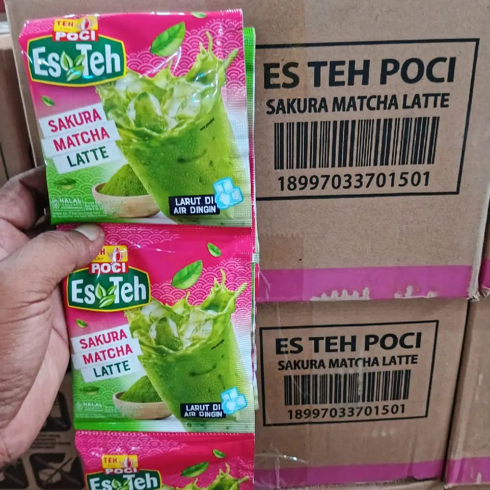 5. Es Teh Poci Sakura Matcha Latte 1 Rcg isi 10 Pcs Larut di Air Dingin Rasa Matcha Latte